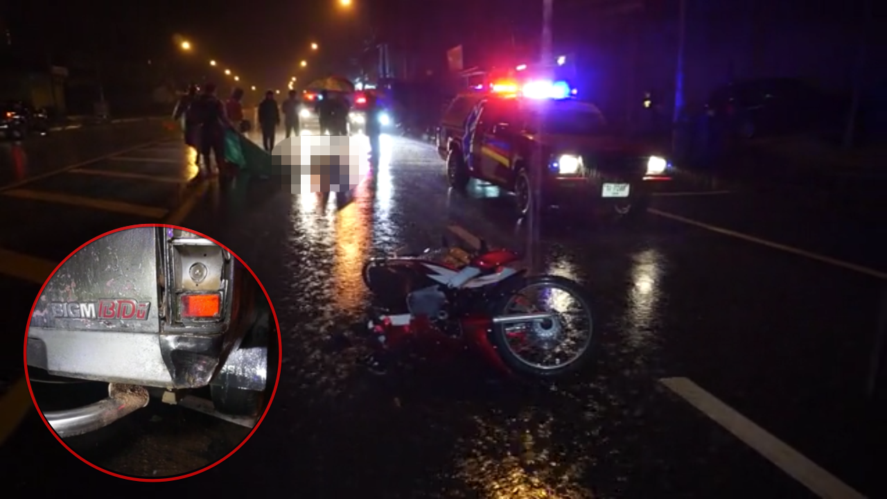 แม่วัย 41 ปี ขับขี่รถจักรยานยนต์กลับจากทำงานที่ร้านคาราโอเกะหาเงินเลี้ยงลูกชายวัย 18 ปี ระหว่างทางฝนตกหนักเสียหลักพุ่งชนท้ายกระบะจอดริมทาง ร่างกระเด็นตกกลางถนนคอหักเสียชีวิต...
