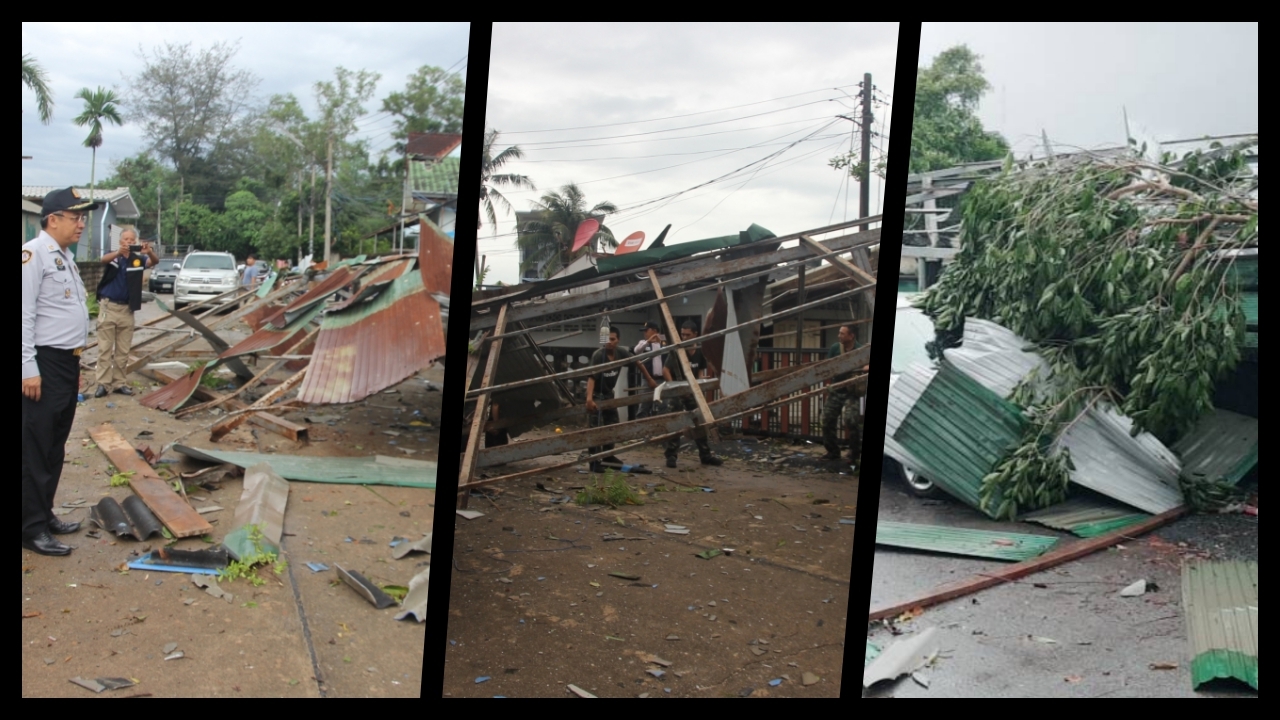 เกิดพายุหมุนเป็นวงกว้าง ในเขตเทศบาลนครสุราษฎร์ธานี ทำให้บ้านเรือนชาวบ้านได้รับความเสียหายจำนวนหลายจุด ถูกกระแสลมพัดหลังคาปลิวว่อน...