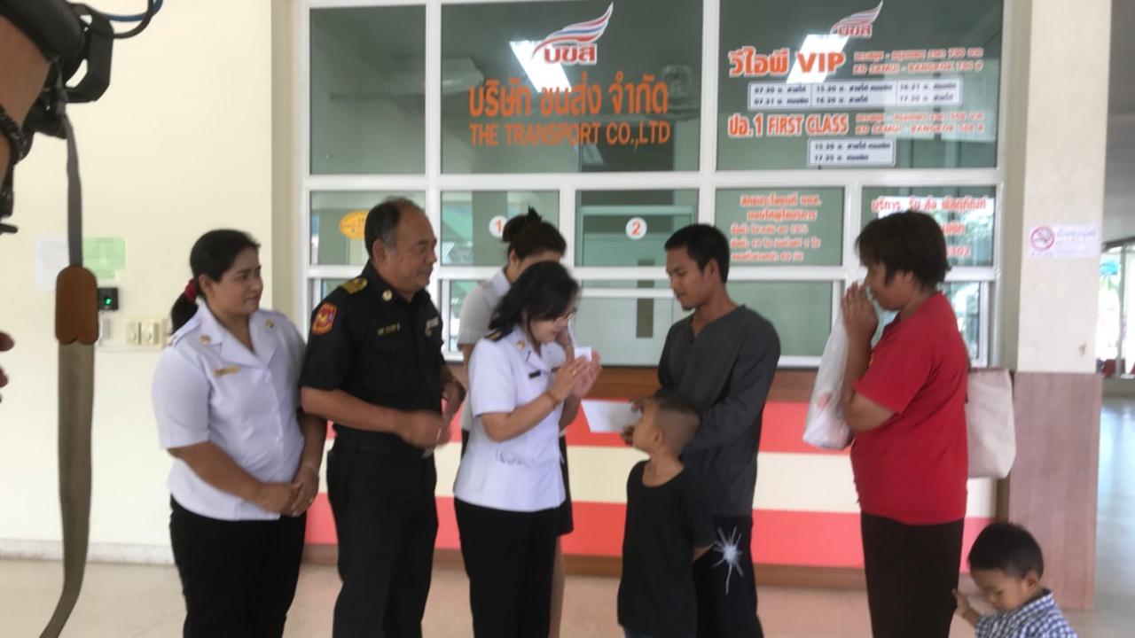 เมื่อเวลา 10.00 น. วันที่ 9 ม.ค. ทางด้าน น.ส.พรพิมล กลิ่นหอม นายสถานีเดินรถสุราษฎร์ธานี บริษัทขนส่ง จำกัด พร้อมด้วย นายวรกิตติ ไชยชนะ หัวหน้าสำนักงานขนส่ง จ.สุราษฎร์ธานี (สาขาเกาะสมุย) ได้เชิญครอบครัวของ นายมงคล ทองโบราณ ทั้งภรรยาและลูกทั้ง 2 คน เดินทางมายังสถานีขนส่งผู้โดยสารอำเภอเกาะสมุย เพื่อสอบถามเหตุการณ์ที่เกิดจากปากของครอบครัวของนายมงคล ที่ถูกบริกรบนรถปรับอากาศประจำทางสาย กรุงเทพฯ-เกาะสมุย ให้ลงจากรถที่ อ.ชะอำ จ.เพชรบุรี เมื่อช่วงดึกของคืนวันที่ 7 ม.ค.ที่ผ่านมา เนื่องจากลูกชายคนเล็กของนายมงคล ร้องไห้เสียงดัง จนทำให้คบขับรถคนที่ 2 นอนหลับพักผ่อนไม่ได้