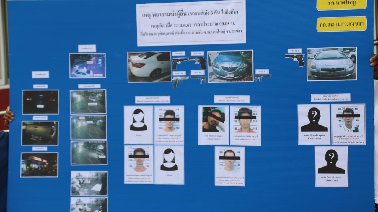 ความคืบหน้าเหตุกลุ่มนักเลงอันธพาลขาใหญ่ 2 แก๊งใน อ.หาดใหญ่ จ.สงขลา ขับรถเก๋ง 3 คัน ไล่ยิงถล่มกันสนั่นเมืองหาดใหญ่เกือบ 20 นัด เมื่อคืนวันที่ 22 ม.ค.ที่ผ่านมา แต่โชคดีที่ไม่มีใครถูกลูกหลงบาดเจ็บ หรือเสียชีวิต แต่มีรถชาวบ้านถูกยิงเสียหาย 4 คัน