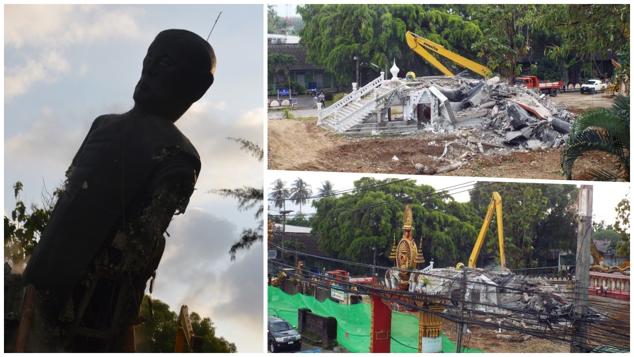 ทุบแล้วรูปหล่อหลวงพ่อแช่ม เกจิดังภูเก็ต สูง 30 เมตร ในวัดพระนางสร้าง หลังถูกโซเชียลถล่มหนัก มีขนาดไม่สมส่วนผิดเพี้ยน แต่กว่าจะรื้อถอนสำเร็จ ทำเอาเหงื่อตก เจอทั้งฝน สายสลิงขาดถึง 2 ครั้ง...