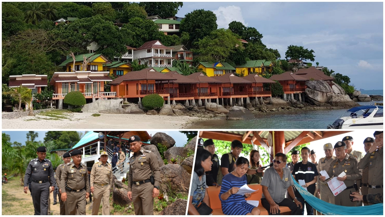 'ศรีวราห์' นำทีม บช.ภ.8 ทหาร ป่าไม้ เข้าบุกยึดรีสอร์ตกำนันชื่อดัง บนหาดริ้น-เกาะพะงัน หลังพบการบุกรุกพื้นที่ป่า และพื้นที่สาธารณะ 19 จุด พบ 4 จุดที่ถูกก่อสร้างเป็นรีสอร์ต และร้านอาหารเพื่อทำตามนโยบายทวงคืนผืนป่าของรัฐบาล คสช.