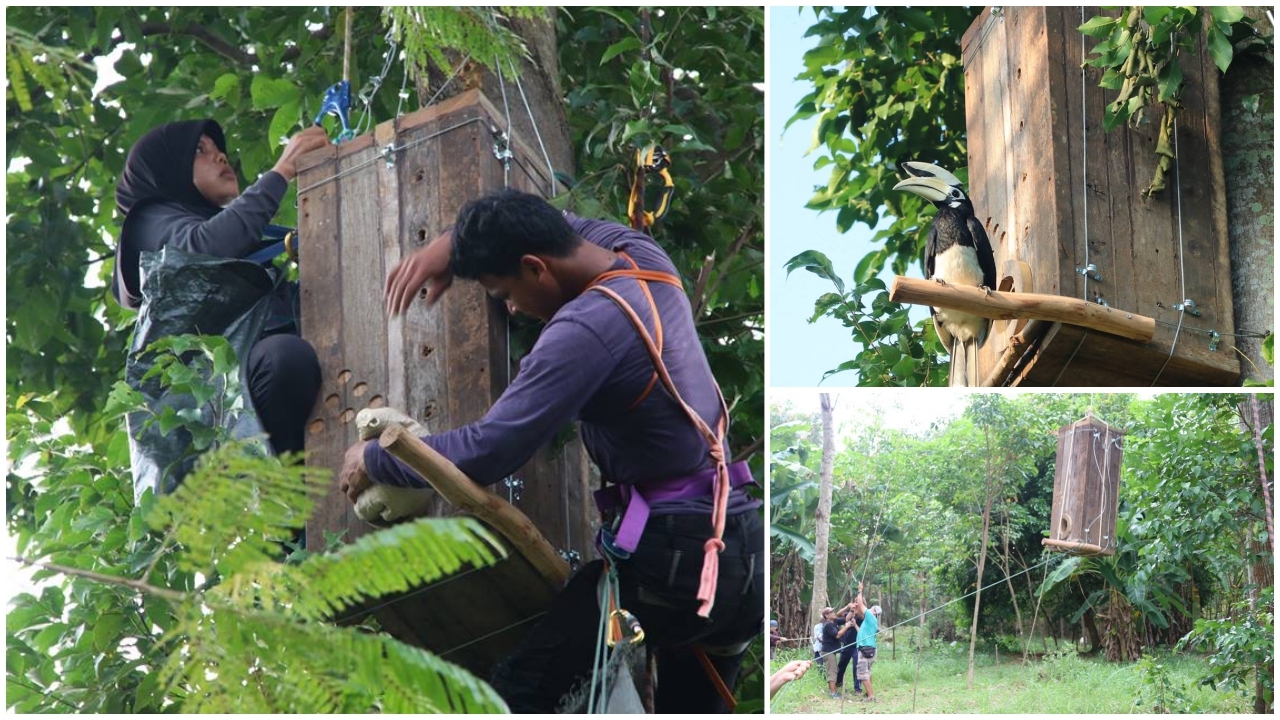 เมื่อวันที่ 13 ก.พ.61 ผู้สื่อข่าวรายงานว่า จากเพจเฟซบุ๊ก "เรารักษ์ เกาะยาว" ได้แชร์ข้อความ และภาพของการติดตั้งโพรงเทียมสำหรับนกเงือก บนเกาะยาวน้อย อ.เกาะยาว จ.พังงา โดยการจัดทำโครงการโพรงรังเทียม ให้กับนกเงือกที่อาศัยอยู่บนพื้นที่เกาะยาว โดยทางกลุ่มชาวบ้านเกาะยาว และนักวิจัยโครงการศึกษานิเวศวิทยาของนกเงือก คณะวิทยาศาสตร์ มหาวิทยาลัยมหิดล ได้นำไม้ขนาด 2x4 นิ้ว สำหรับสร้างโพรงรังเทียมเป็นกล่องไม้ขนาดประมาณ 50x 50x100 ซม. ลักษณะเป็นตู้ทึบปิดมิดชิด และจะมีช่องทางเข้าโพรงโดยใช้ไม้หนาประมาณ 2 นิ้ว และนำดินไปใส่ไว้ในโพรงรังประมาณ 10-15 กก. ซึ่งจะเสมอปากโพรงรังพอดี และมีคอนหน้าทางเข้าโพรงสำหรับพ่อนก ใช้เกาะป้อนอาหารให้แม่นกและลูกนก ก่อนทางชาวบ้านและเจ้าหน้าที่นักวิจัยโครงการศึกษานิเวศวิทยาของนกเงือก คณะวิทยาศาสตร์ มหาวิทยาลัยมหิดล นำโพรงที่สร้างเสร็จไปติดตั้งบนต้นไม้ตามจุดต่างๆในพื้นที่เกาะยาว หลังจากการติดตั้งโพรงนกเงือกเสร็จภายใน 7 วัน พบว่านกเงือกตัวเมียจะเข้าไปอาศัยและปิดปากโพรงก็จะเห็นนกเงือกตัวผู้ เอาอาหารมาป้อนให้กับตัวเมีย