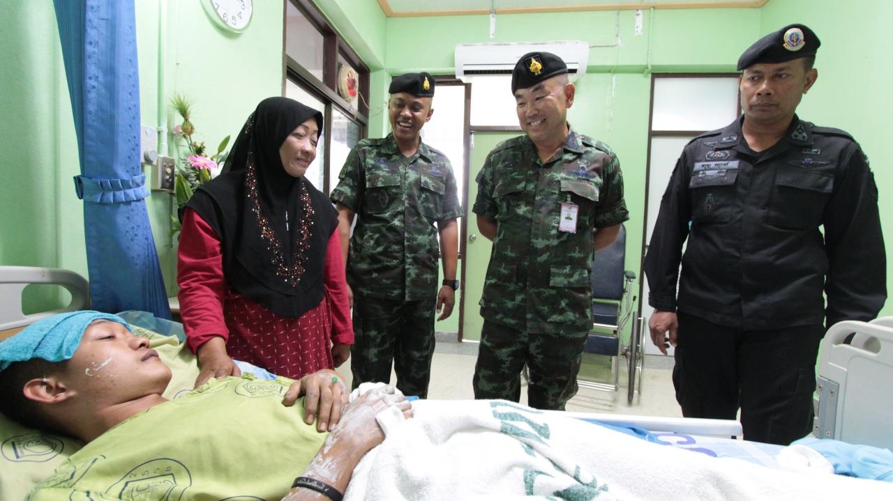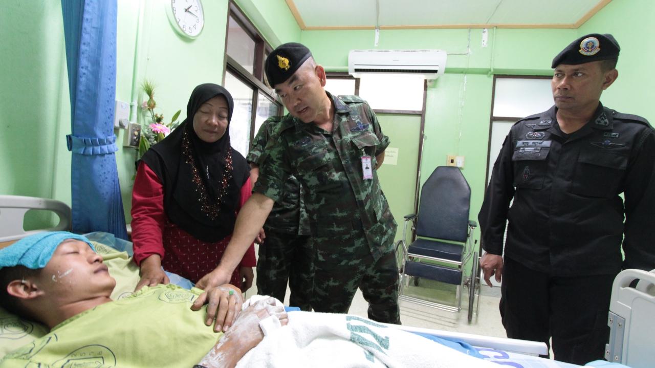 ผบ.พล.พัฒนา 4 เข้าเยี่ยม 4 ทหารกล้าจาก ช.พัน.5 ถูกกลุ่มผู้ไม่หวังดีลอบวางระเบิด ขณะเข้าไปปฏิบัติภารกิจพัฒนาในพื้นที่ที่ บ.ตือกอ อ.จะแนะ จ.นราธิวาส ทำให้บาดเจ็บ ที่ รพ.จะแนะ คาดกลุ่มก่อเหตุเป็นแนวร่วมในพื้นที่...