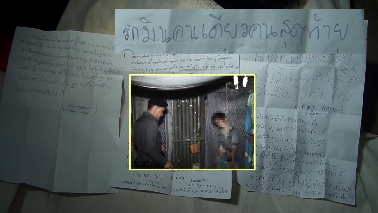 พบในตัวผู้ตายมีเงินติดกระเป๋า อยู่ 400 บาท และยังพบจดหมาย ลาตายเขียนใส่กระดาษจำนวน 3 แผ่น โดยฉบับแรกเขียนถึงแฟนหนุ่ม มีใจความว่า "รักมินคนเดียว คนสุดท้ายในชีวิต ตั้งแต่มาอยู่กับมิน ไม่เคยมีใคร หรือมีอะไรกับใคร เราไม่โกรธมินที่ทำกับเราแบบนี้ บอกตรงๆ สงสารกันบ้างก็ยังดี..ถึงจะสายไปแล้วก็ตาม คนนะไม่ใช่ควาย ไม่ต้องหลอกก็ได้"