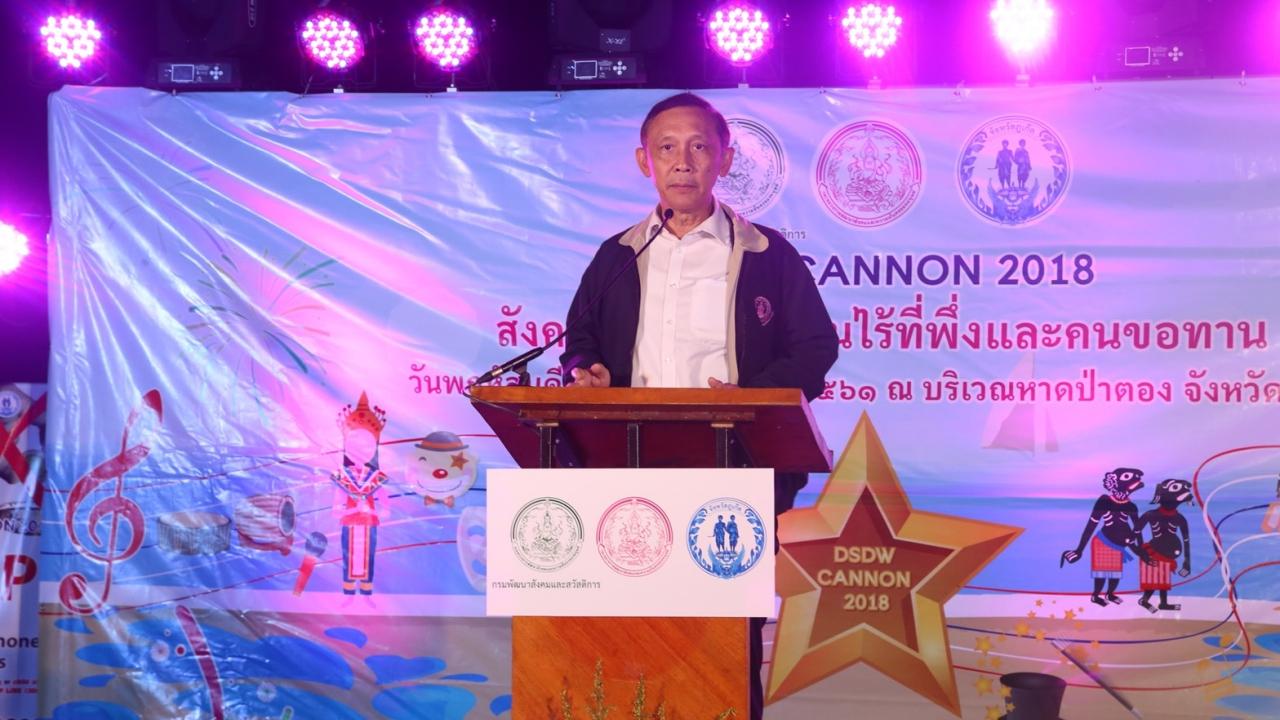 ทั้งนี้ กระทรวง พม.โดย พส. ได้กำหนดจัดโครงการรณรงค์ "สังคมไทย ห่วงใยคนไร้ที่พึ่งและคนขอทาน" ภายใต้นโยบาย DSDW CANNON 2018 เพื่อประชาสัมพันธ์และรณรงค์ในการสร้างความรู้ความเข้าใจด้านกฎหมายเกี่ยวกับการคุ้มครองกลุ่มเป้าหมายให้กับประชาชนทั่วไป ตลอดจนชาวต่างชาติ โดยดำเนินการที่จังหวัดภูเก็ตเป็นแห่งแรก เนื่องจากจังหวัดภูเก็ตเป็นจังหวัดท่องเที่ยวที่สำคัญของประเทศ และมีสถานที่ท่องเที่ยวที่น่าสนใจจำนวนมาก โดยเฉพาะทางธรรมชาติและศิลปวัฒนธรรม อีกทั้งมีการผสมผสานศิลปวัฒนธรรมดั้งเดิมและเทคโนโลยีสมัยใหม่ เช่น ภูเก็ตแฟนตาซี และการแสดงเปิดหมวก หรือ Street Performance เป็นต้น ซึ่งสามารถดึงดูดนักท่องเที่ยวทั้งชาวไทยและชาวต่างชาติ และสร้างรายได้ให้แก่จังหวัดภูเก็ตและประเทศไทยจำนวนมาก