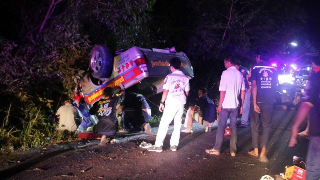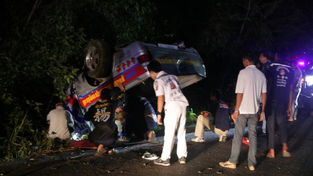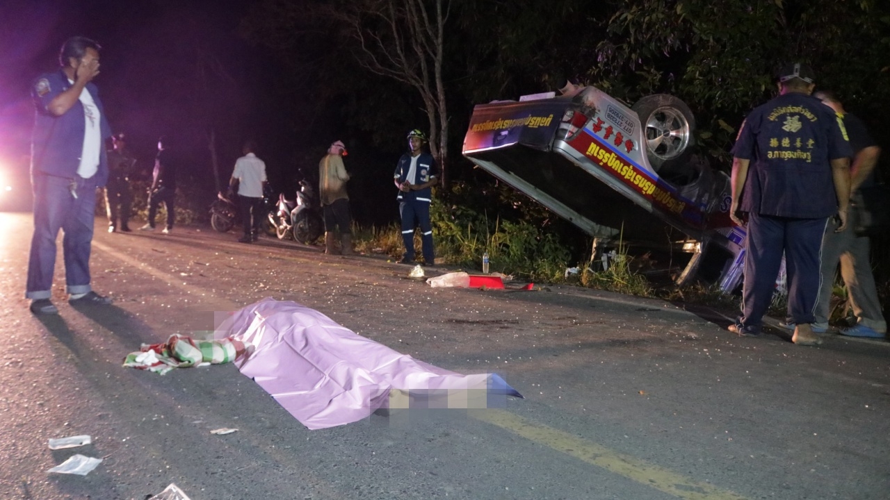 โดยมีญาตินั่งมาบนรถกู้ภัย ด้วย 2 คน และเมื่อมาถึงที่เกิดเหตุ ซึ่งเป็นทางโค้ง รถเกิดเสียหลักหลุดโค้ง ชนต้นไม้ริมถนนขาดสองท่อน ก่อนพลิกคว่ำ มีผู้เสียชีวิตและได้รับบาดเจ็บดังกล่าว ทั้งนี้ อยู่ระหว่างการสอบสวนหาสาเหตุที่แท้จริงต่อไป