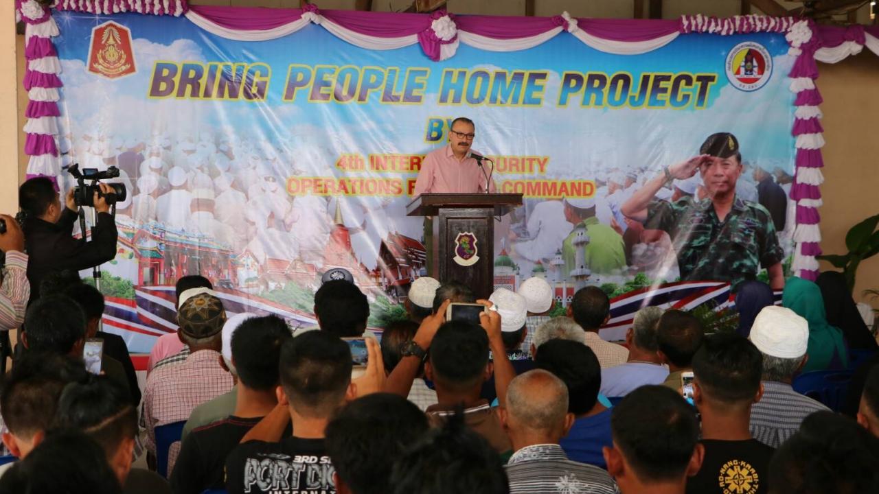 ด้าน พล.ท.ปิยวัฒน์ นาควานิช แม่ทัพภาคที่ 4 กล่าวว่า ปัจจุบันโครงการพาคนกลับบ้านได้ดำเนินการอย่างเป็นรูปธรรม และได้รับการตอบรับจากผู้เห็นต่างจากรัฐมากยิ่งขึ้น ทำให้ทุกคนมีความเชื่อมั่นและไว้วางใจต่อภาครัฐ และเปลี่ยนอุดมการณ์วางอาวุธและหันมาสู่กระบวนการตามแนวทางสันติวิธี ทั้งนี้กองอำนวยการรักษาความมั่นคงภายในภาค 4 ส่วนหน้าจะยังคงมุ่งมั่นในการขับเคลื่อนการแก้ไขปัญหาในทุกมิติ เพื่อมอบโอกาสและมอบชีวิตใหม่ให้กับครอบครัวของผู้ที่เคยหลงผิดให้กลับสู่อ้อมกอดของครอบครัว และร่วมกันพัฒนาจังหวัดชายแดนภาคใต้ให้กลับมาสงบสุขอีกครั้ง