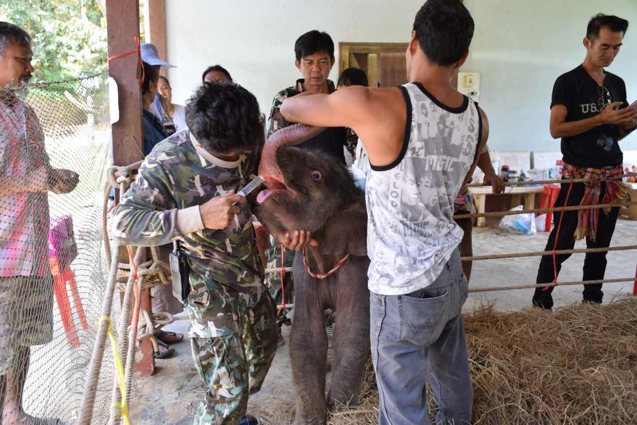 ด้านนายสามารถ เลาห์ประสริฐ ปศุสัตว์อำเภอพะโต๊ะ ซึ่งเป็นผู้หนึ่งที่คอยติดตามโขลงช้างป่ากล่าวว่า ตอนนี้ต้องดูแลอย่างใกล้ชิด โดยเฉพาะเรื่องอาหารให้กินได้เฉพาะนมที่ใช้เลี้ยงลูกช้างเท่านั้น และให้น้ำเกลือเพื่อไม่ให้ลูกช้างเกิดอาการอ่อนเพลียเพราะยังมีอาการบาดเจ็บอยู่บ้างจากการกลิ้งตกลงจากเขาที่สูงชัน นอกจากนั้นจะต้องเฝ้าระวังไม่ให้ชาวบ้านเข้าไปสัมผัสกับตัวลูกช้าง ยกเว้นเฉพาะพี่เลี้ยงลูกช้างเท่านั้น ส่วนขั้นตอนต่อไปต้องรอให้นายสัตวแพทย์และผู้เชี่ยวชาญจากกรมอุทยานแห่งชาติ สัตว์ป่า และพันธุ์พืช ซึ่งกำลังเดินทางมาดู ว่าจะดำเนินการอย่างไรต่อไป.