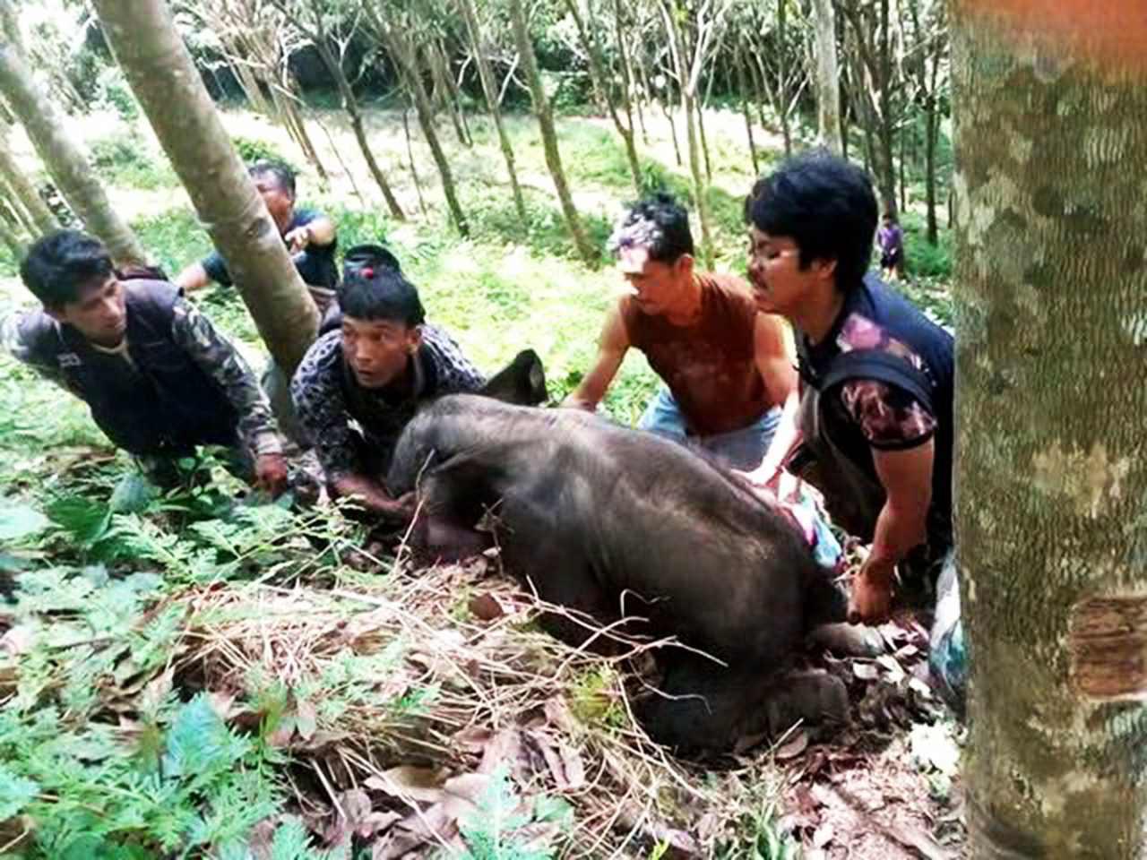 นายฐานะ ทองสมุย หน.ชุดเฝ้าระวังติดตามช้างป่า ประจำอุทยานแห่งชาติน้ำตกหงาว กล่าวว่าลูกช้างแรกเกิดเพศเมียตัวนี้มีน้ำหนักราว 200 กิโลกรัม โดยเมื่อช่วงประมาณเที่ยงคืนของวันที่ 24 ก.พ.ที่ผ่านมา ตนและอาสาติดตามเฝ้าระวังช้างป่า ได้ยินเสียงร้องโหยหวนของแม่ช้างป่าเป็นเวลานานที่บริเวณภูเขาสูงชัน เขตรอยต่อระหว่างหมู่ที่ 10 กับหมู่ที่ 14 ตำบลตะโก อ.ทุ่งตะโก จึงออกติดตามไปดูจนกระทั่งพบลูกช้างแรกเกิดเพศเมียพลัดตกลงมาจากภูเขาสูงชัน ขณะที่แม่ช้างและโขลงช้างได้ทิ้งหายไปแล้ว