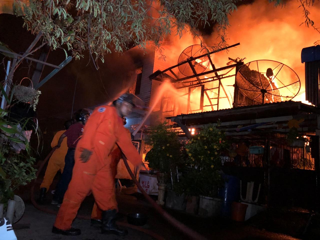 ด้านเจ้าหน้าที่ดับเพลิงของเทศบาลนครหาดใหญ่ ต้องระดมรถดับเพลิง จำนวน 8 คันเข้ามาทุกทิศทางรอบจุดไฟไหม้ แต่เป็นไปด้วยความลำบาก เพราะทางเข้าค่อนข้างแคบ จากนั้นได้เร่งระดมฉีดน้ำดับไฟที่กำลังลุกไหม้ บ้านทั้ง 3 หลังอย่างหนัก เพื่อจำกัดพื้นที่ไม่ให้ลุกลามขยายวงกว้างเพิ่มขึ้น โดยเฉพาะโรงงานแปรรูปสินค้าการเกษตรที่อยู่ด้าน เนื่องจากมีถังแก๊สอยู่จำนวนมาก โดนเจ้าหน้าที่ใช้เวลากว่า 30 นาที จึงควบคุมเพลิงไว้ได้ในวงจำกัด แต่ยังต้องฉีดน้ำเลี้ยงไว้ตลอดเวลา