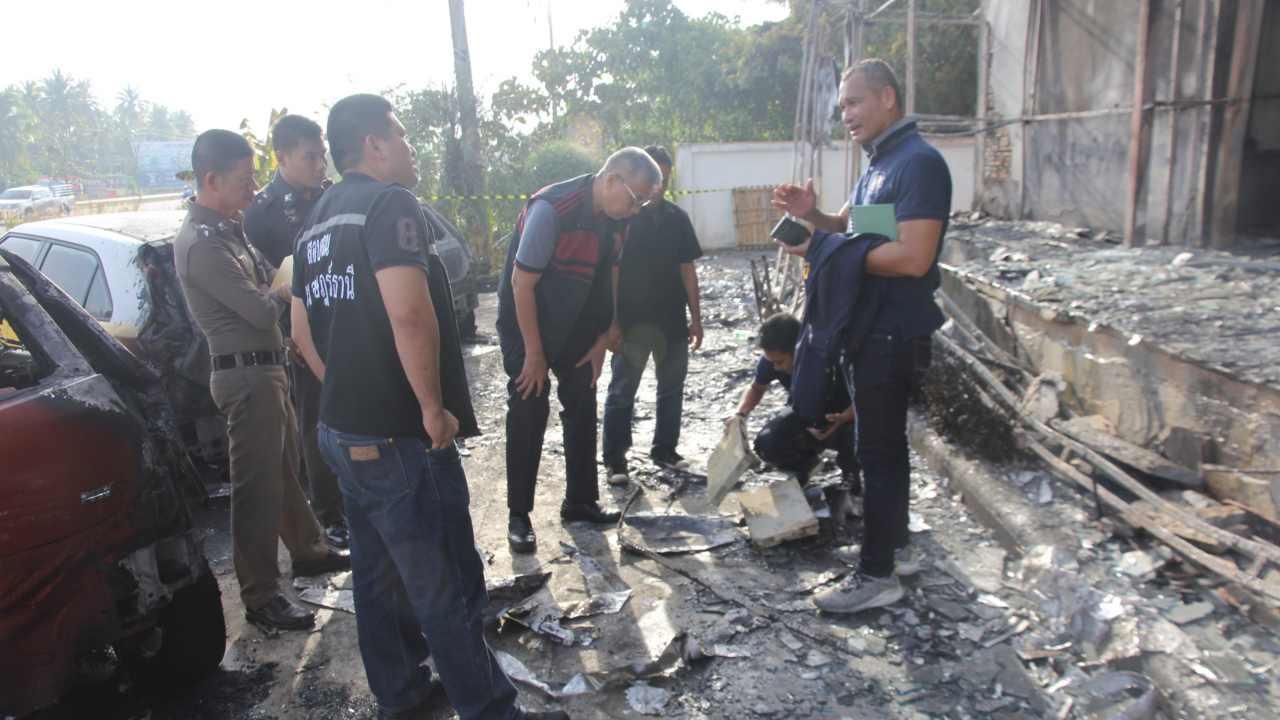 ต่อมา เวลา 06.30 น. พ.ต.อ.วิชอบ เกิดเกลี้ยง รอง ผบก.ภ.จว.สุราษฎร์ธานี พร้อมเจ้าหน้าที่พิสูจน์หลักฐาน 8 เดินทางไปยังที่เกิดเหตุ เพื่อเข้าตรวจสอบหาสาเหตุ โดยมี น.ส.จุฬาลักษณ์ ศักดิ์ศรีสุวรรณ อายุ 35 ปี เจ้าของบริษัท ร่วมอยู่ด้วย แต่ยังไม่สามารถเข้าไปในอาคารได้ เนื่องจากยังมีความร้อนคุกรุ่นอยู่ เบื้องต้น คาดต้นเพลิงมาจากส่วนสำนักงานของบริษัทบริเวณชั้น 2 ของโชว์รูม สาเหตุจากไฟฟ้าลัดวงจร ความเสียหายไม่น้อยกว่า 50 ล้านบาท