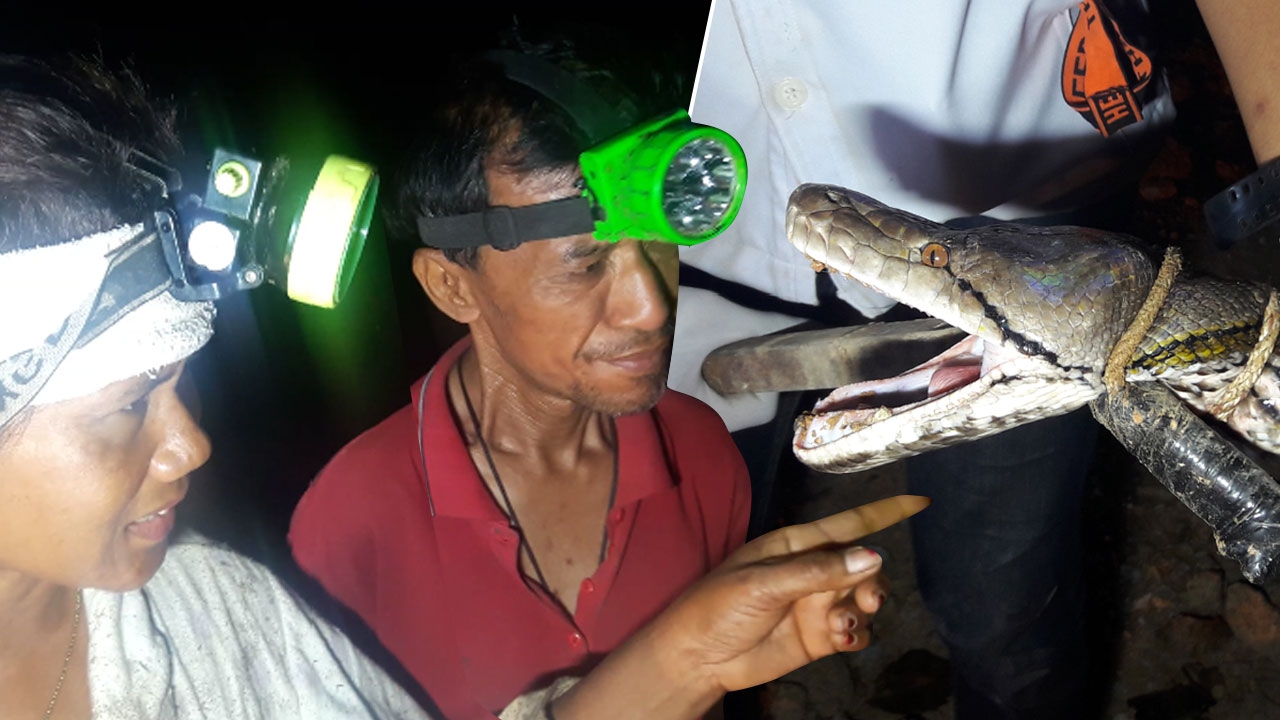 โปรดเติมเงินในมือถือ! 2 ผัวเมียตกใจสุดขีด เจองูเหลือมยักษ์ยาว 4 เมตร หนัก 70 กก. เลื้อยอยู่ในสวนยาง รีบวิ่งออกจากสวนไปหยิบโทรศัพท์โทรหากู้ภัย แต่เงินหมดโทรไม่ได้ ต้องขี่จยย.ออกมาตามกู้ภัยฯ