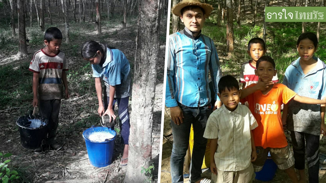 เมื่อผู้สื่อข่าวได้เดินทางไปที่สวนยางพารา พบน้องฟิว อายุ 12 ปี กำลังช่วยกันเก็บน้ำยางพาราอยู่กับน้อง ชื่อน้องกาย อายุ 3 ปี มีน้องชายอีก 2 คน ชื่อน้องกัน อายุ 8 ปี และน้องกุล อายุ 6 ปี อยู่ในสวนยางที่เจ้าของสวนจ้างให้เก็บน้ำยางวันละ 150 บาท