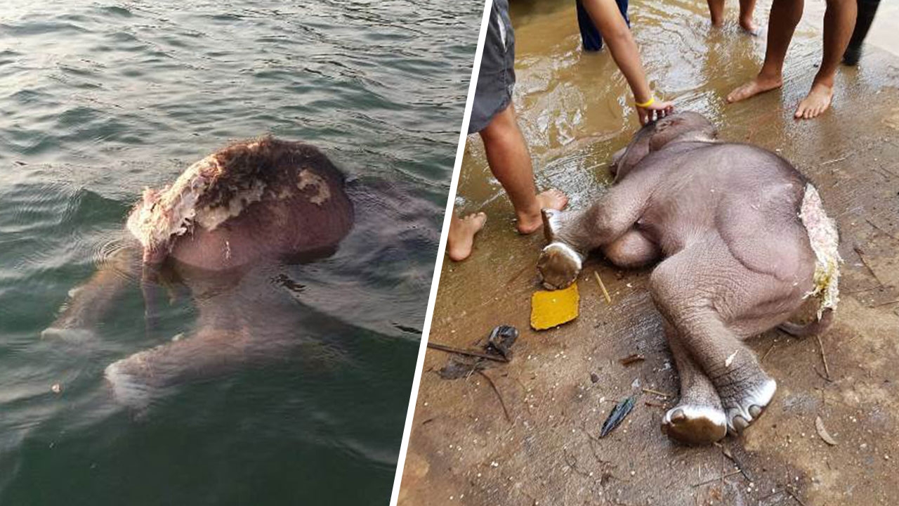 ชาวบ้านล่องเรือในเขื่อนบางลาง เจอซากลูกช้างวัยขวบเศษลอยอืด คาดลงมาเล่นน้ำคลายร้อนพร้อมโขลงแล้วพลัดตกจมน้ำ