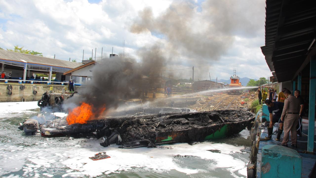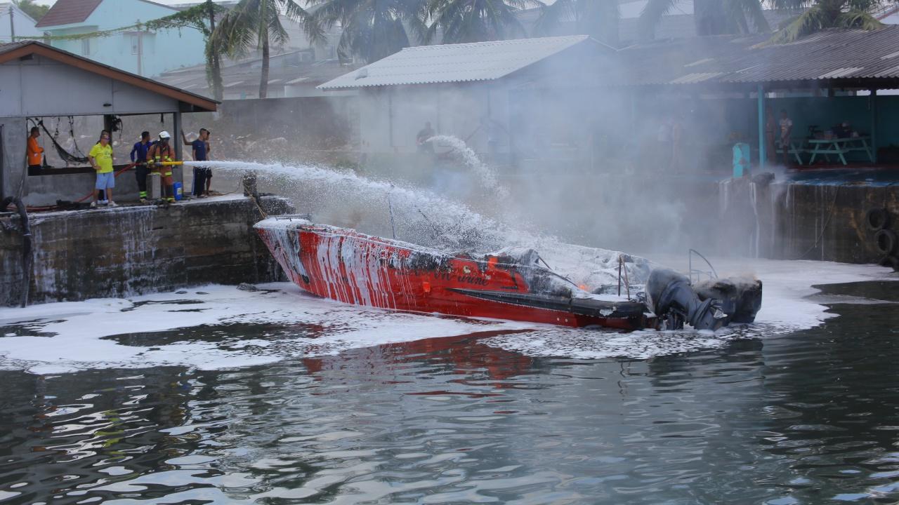 ขณะที่ นายสายัน กิจมะโน ป้องกันและบรรเทาสาธารณภัยจังหวัดพังงา กล่าวว่า หลังจากที่ ปภ. ได้รับแจ้งเหตุ จึงได้นำเรียนไปยังผู้ว่าราชการจังหวัดพังงา เพื่อสั่งการให้หน่วยงานที่เกี่ยวข้องเข้าช่วยเหลือในส่วนที่ตัวเองรับผิดชอบ ส่วน ปภ.พังงา ได้นำอุปกรณ์และชุดเผชิญเหตุเดินทางเข้าสนับสนุนจุดเกิดเหตุพร้อมประสานไปยังรถดับเพลิงที่อยู่ใกล้เข้าช่วยเหลือทันที ซึ่งใช้เวลาประมาณ 2 ชม. จึงสามารถทำการระงับเพลิงเอาไว้ได้ เนื่องจากเรือลำดังกล่าวเป็นเรือที่มีการเดิมน้ำมันเต็มลำเรือ ประกอบกับเรือทั้ง 2 ลำ เป็นไฟเบอร์กลาส ซึ่งง่ายต่อการติดไฟและยากต่อการดับด้วยน้ำ เจ้าหน้าที่จึงต้องใช้สารเคมีผสมน้ำฉีดสกัดจนกว่าเพลิงจะหยุด