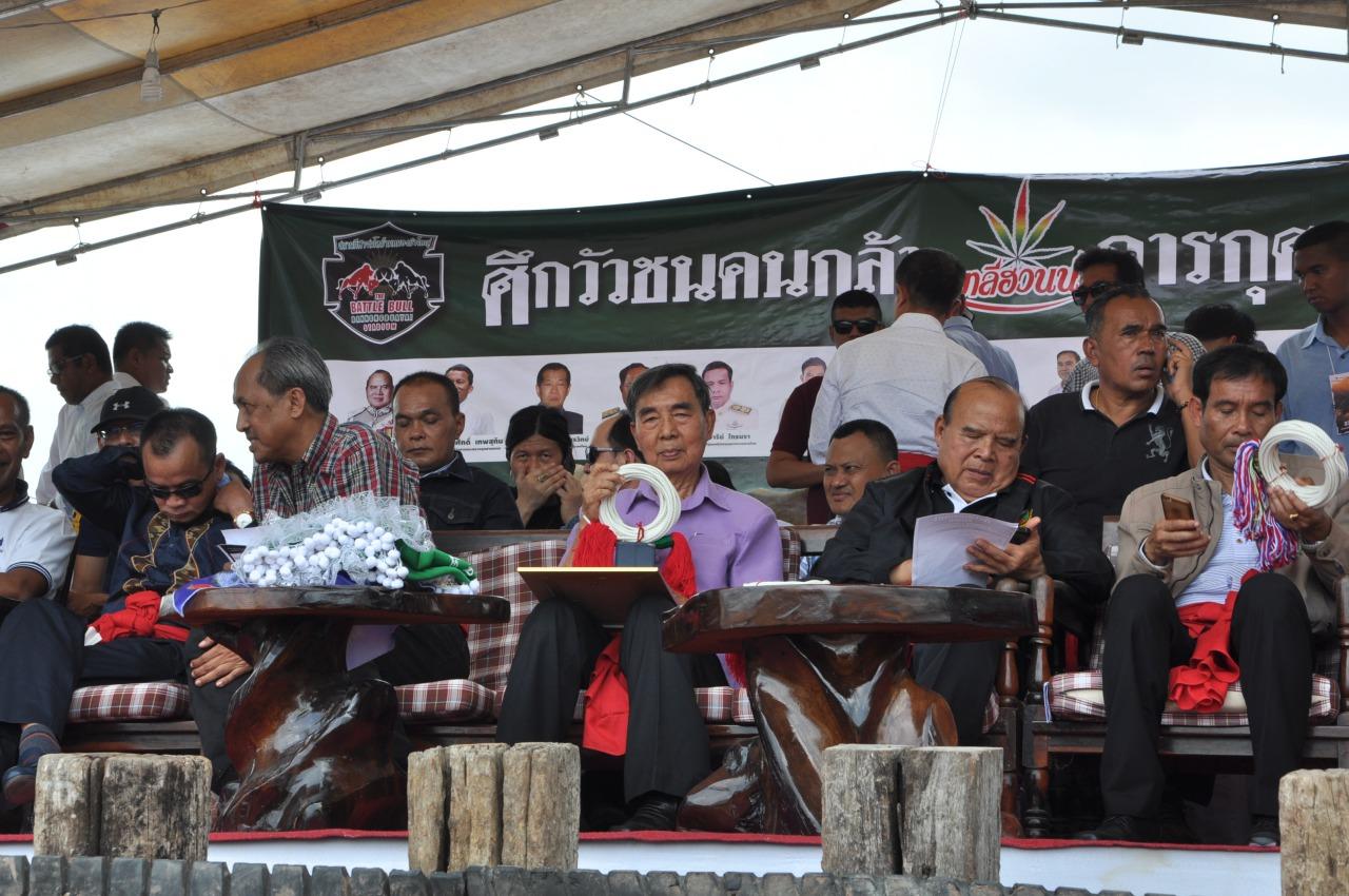เมื่อวันที่ 23 เม.ย.61 ที่สนามชนโคหนองบัวใหญ่ อ.รัษฎา จ.ตรัง พล.ต.อ.สุนทร ซ้ายขวัญ นายกสมาคมชาวปักษ์ใต้ให้เกียรติมาร่วมงานและเป็นประธานเปิดงาน “ศีก วัวชน คนกล้า มาลีฮวนน่า การกุศล” เป็นระดมพลคนวงการวัวชนทั่วแดนใต้ พร้อมด้วย นายกิจ หลีกภัย นายก อบจ.ตรัง ผู้ใหญ่ฯ กิตติพงษ์ มีชนะ นายสนาม ปลัดประวี กัญชนะกาญจน์ ผู้จัดการสนาม ร่วมกับอาจารย์คฑาวุธ ทองไทย หรืออาจารย์ไข่ มาลีฮวนน่า ที่ปรึกษาคณะอนุกรรมมาธิการด้านศิลปวัฒนธรรมสภานิติบัญญัติแห่งชาติ และผู้หลักผู้ใหญ่ในวงการชนวัวของแดนใต้ครบทีม โดยมีวัตถุประสงค์เพื่อหารายได้เพื่อช่วยเหลือโรงพยาบาลทหารผ่านศึก ท่ามกลางบรรดานักเลงวงการวัวชน 14 จังหวัดภาคใต้มากันจนเต็มสนามกว่า 1 พันคน