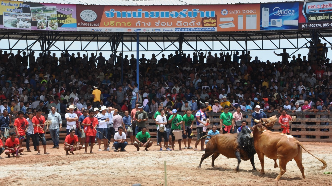 บรรยากาศภายในสนามชนวัวเป็นไปอย่างคึกคึก ริมรั้วสนามมีการตั้งเวทีคอนเสิร์ตขนาดใหญ่ของ อาจารย์ไข่ มาลีฮวนน่า เพื่อมาขับร้องบทเพลงให้ประชาชนและที่มาดูวัวชนในสนามได้ชมกันแบบเต็มอิ่มตั้งแต่ช่วงกลางวัน ในศึก วัวชน คนกล้า มาลีฮวนน่า การกุศล เพื่อช่วยเหลือโรงพยาบาลทหารผ่านศึก โดยมีวัวดังของภาคใต้ทำการชนกัน7 คู่ โดยมีวงเงินเดิมพันติดปลายเขาหลายล้านบาท และชิงเสื้อสามารถจากนายสมชาติ เจริญวัชรวิทย์ นายกสมาคมกีฬามวยอาชีพแห่งประเทศไทย