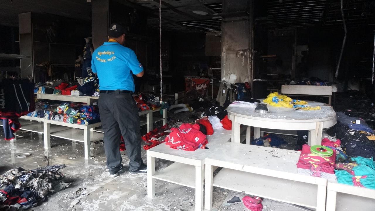 พิสูจน์หลักฐานภูเก็ต ตรวจสอบเพลิงไหม้ร้านขายเสื้อผ้าแบรนด์เนมห้างดังกลางเมืองภูเก็ต คาด ไฟฟ้าลัดวงจร