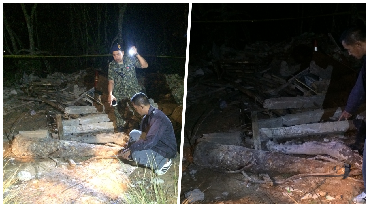 จุดที่พบห่างจากถนนใหญ่เข้าไปภายในซอยดังกล่าวราว 100 เมตร เป็นจุดทิ้งซากวัสดุก่อสร้าง เจ้าหน้าที่ได้นำเชือกกั้นไม่ให้บุคคลภายนอกเข้าไป เพื่อป้องกันอันตราย ภายในพบแท่งโลหะจำนวน 2 แท่งลักษณะคล้ายกัน โดยทั้ง 2 แท่งมีรูกลวงภายใน ด้านหนึ่งเปิด อีกด้านปิด ด้านที่มีรูกลวงกว้างราว 10 เซนติเมตร อีกด้านเป็นส่วนท้ายปิด กว้างราว 20 เซนติเมตร ยาวราว 1 เมตร มีสนิมกัดกร่อนจนเห็นภายใน 1 แท่งวางปะปนอยู่กับซากวัสดุก่อสร้าง หน่วยเก็บกู้วัตถุระเบิดจึงเข้าตรวจสอบอย่างละเอียด ก่อนยืนยันว่าปลอดภัย ไม่มีวัตถุระเบิดภายใน เบื้องต้น มีลักษณะเป็นกระบอกปืนใหญ่ คาดว่าอายุนับร้อยปี เมื่อดูจากการผุกร่อน ซึ่งเป็นลักษณะการผุกร่อนจากการแช่ในน้ำทะเล ซึ่งต้องหาที่มาของวัตถุดังกล่าว จากนั้นจึงส่งมอบให้อำเภอถลางเป็นผู้ดำเนินการต่อ