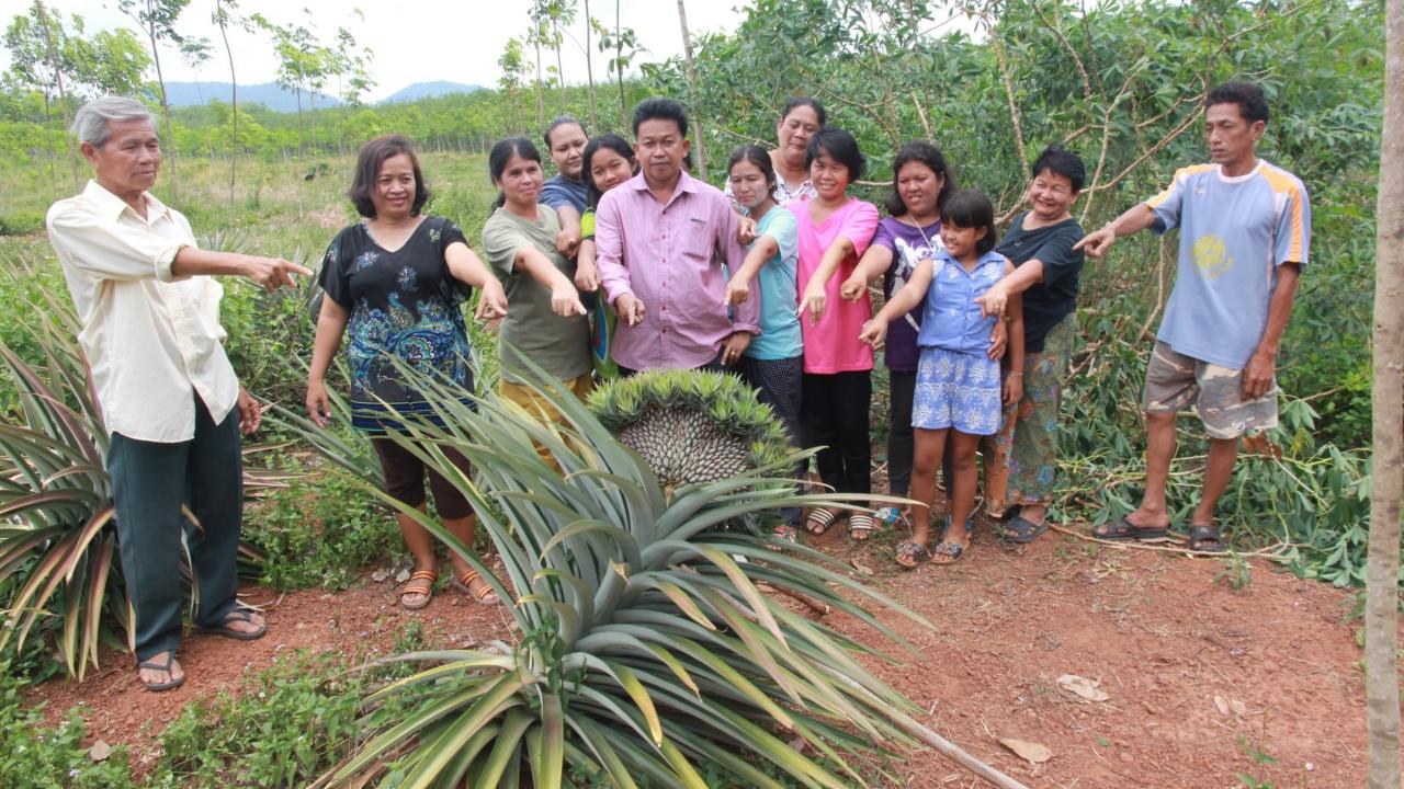 วันที่ 29 เม.ย. ที่ จ.สุราษฎร์ธานี ผู้สื่อข่าวได้รับแจ้งจากชาวบ้านห้วยเสียด ว่า พบต้นสับปะรด ออกผลแปลกประหลาด ผิดจากผลสับปะรดทั่วไป ที่บริเวณสวนยางพาราของ นางชาลีณี ตรีกูดอายุ 41 ปี อยู่บ้านเลขที่ 22 ม.9 ต.ดอนสัก อ.ดอนสัก จ.สุราษฎร์ธานี จึงได้เดินทางลงพื้นที่