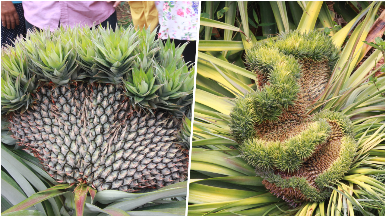 โดยจุดที่พบสับปะรดประหลาดดังกล่าว อยู่ภายในบริเวณสวนยางพารา อายุ 2 ปีเนื้อที่ประมาณ 19 ไร่ ซึ่งได้มีการปลูก กล้วย มันสำปะหลัง และสับปะรดแซมในร่องกลางของยางพารา ซึ่งได้ปลูกสับประรด จำนวน 50 ต้น โดยในจำนวนต้นสับปะรดที่ปลูกนั้น ปรากฏว่า มีอยู่ต้นหนึ่ง มีลักษณะออกผลแปลกประหลาด คือมีลักษณะแบน คล้ายรูปหัวใจ มีความกว้างประมาณ 35 ซม. สูงประมาณ 20 ซม. และมีหัวจุกจำนวน 49 หัว ซึ่งไม่เหมือนหัวจุกสับปะรดทั่วไป ที่มีเพียงหัวจุกเดียวเท่านั้น