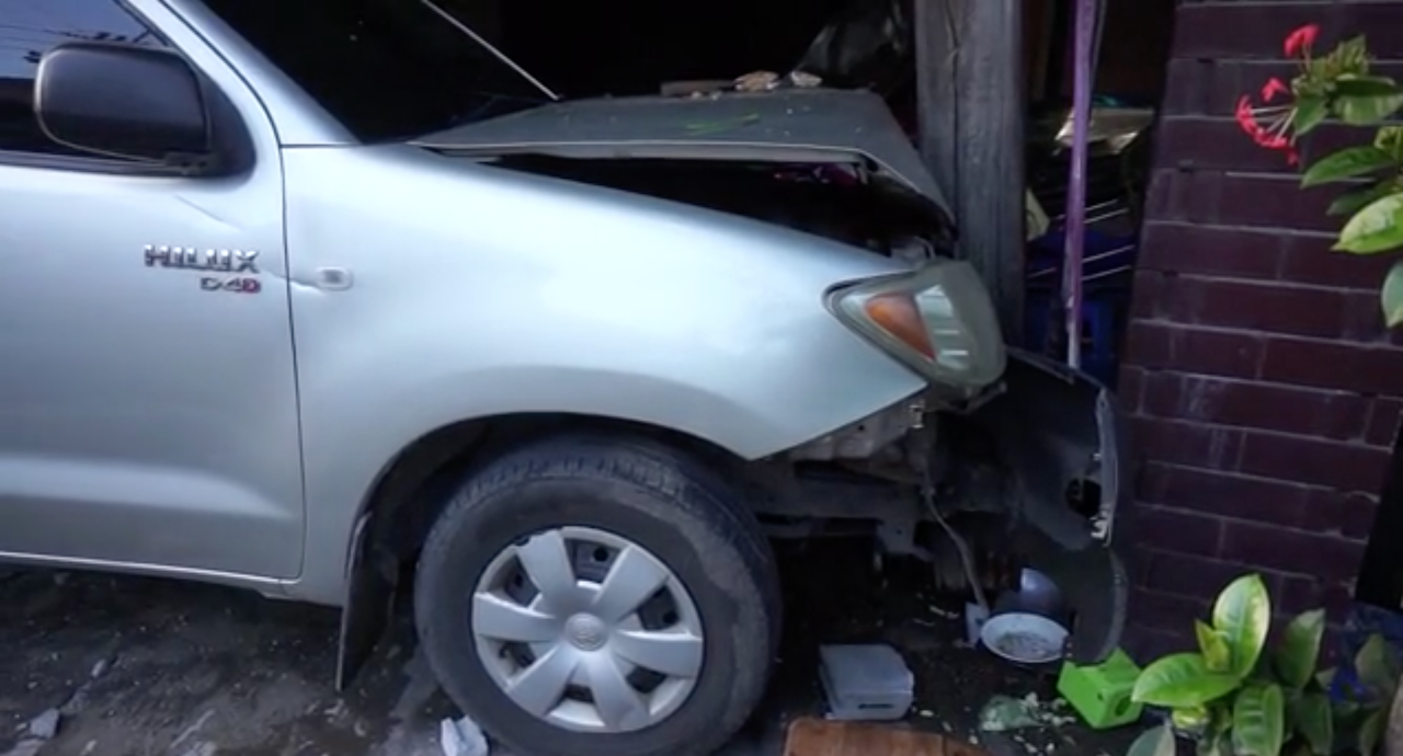 สอบถาม นายสามารถ เบื้องต้นทราบว่า ขณะที่ขับรถกระบะคันดังกล่าวมาหาอาหารเย็นกิน แต่ตนต้องทายาก่อนอาหาร จึงหยิบยาใส่ปาก แต่ยาดันติดคอ ตนพยายามไอ เพื่อให้ยาหลุดออกจากคอ ระหว่างนั้น เท้าก็ยังอยู่ที่คันเร่ง และมือจับพวงมาลัย ทำให้รถเสียหลักพุ่งชนรถจักรยานข้างทาง แล้ววิ่งตรงไปข้างหน้า พุ่งขึ้นฟุตปาท ซึ่งเป็นร้านขายผัดไทย จนชนได้รับความเสียหาย และมีผู้ได้รับบาดเจ็บดังกล่าว ซึ่งตอนแรกก็ตั้งใจว่า จะมากินผัดไทย เพราะเป็นขาประจำร้านนี้ แต่ก็มาเกิดอุบัติเหตุก่อน ซึ่งเจ้าหน้าที่จะได้ดำเนินการตามกฎหมายต่อไป.