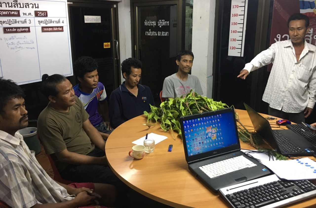 ช่วงสาย วันที่ 18 พ.ค. 61 พ.ต.ท.วีระศักดิ์ เดชประมวลพล รอง ผกก.สส.สภ.สะเดา จ.สงขลา สั่งการให้ตำรวจชุดสืบสวนออกตรวจตราพื้นที่รับผิดชอบบริเวณบนถนนสายริมรั้วชายแดนด่านนอก-คลองยน ม.2 ต.สำนักขาม อ.สะเดา จ.สงขลา พบกลุ่มชาย ฉกรรจ์ 5 คน ทราบชื่อมี นายจรูญ เต่าคง, นายอิสระ ดีนุ่ม, นายมูฮัมหมัดลุคฟี ตาเยะ, นายเฉลิมยะลา และ นายสหชาติ เพชรสีนวล มากับรถกระบะในรถมีสะตอ จำนวน 13 พวงวางอยู่