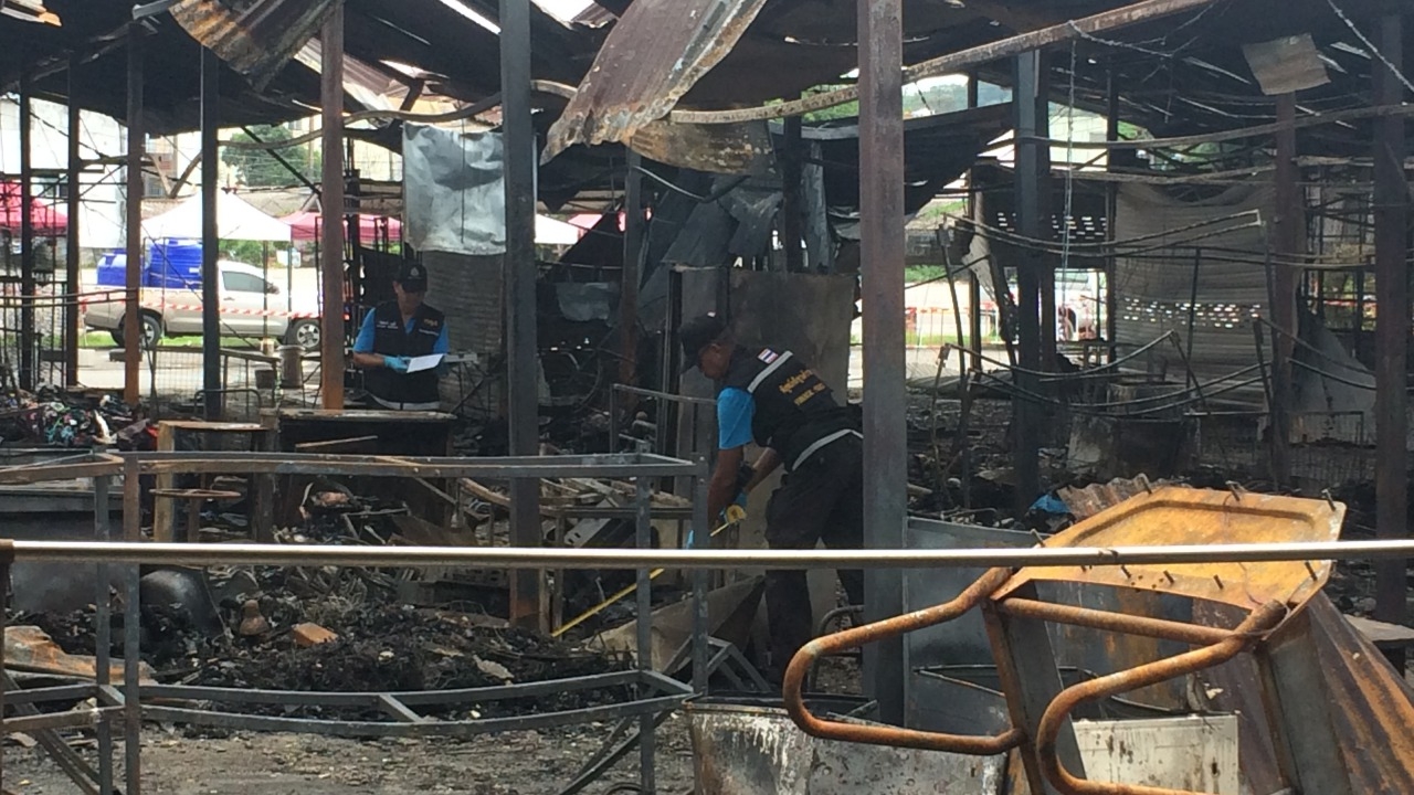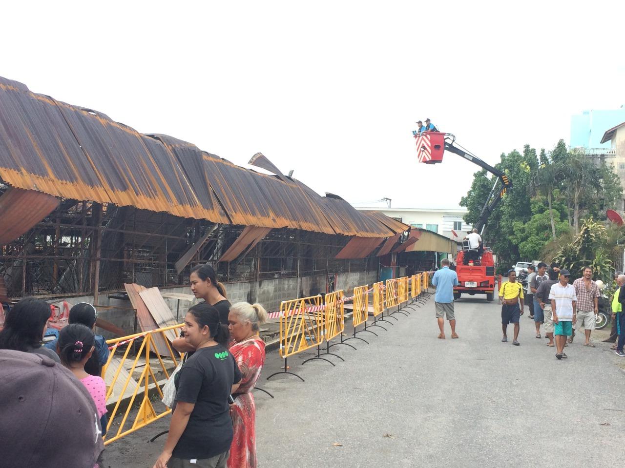 พฐ.ภ.8 เข้าตรวจสอบหาสาเหตุเพลิงไหม้ตลาดจตุจักรภูเก็ต ขณะที่ผู้บริหารตลาดเตรียมตั้งเต็นท์ให้พ่อค้าแม่ค้าที่ยังมีของเหลือมาขายชั่วคราว เพื่อบรรเทาความเดือดร้อน...