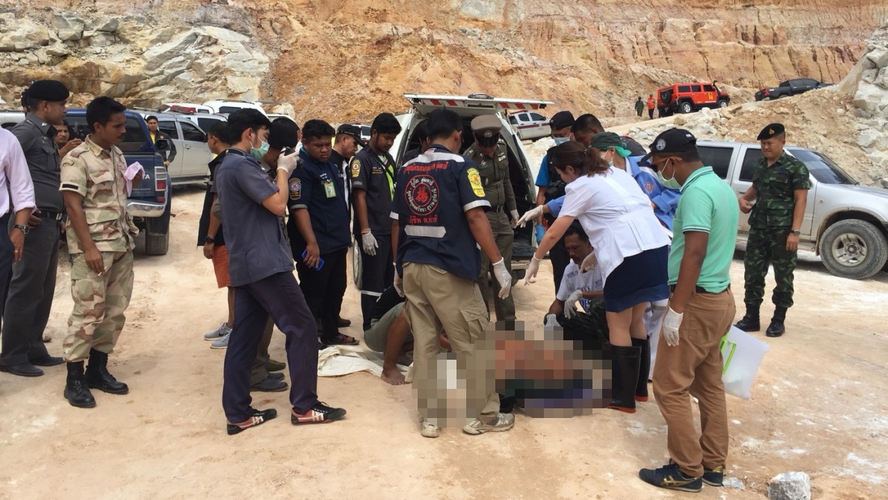 ที่เกิดเหตุเป็นเหมืองขุดความลึกกว่า 100 เมตร พบรถแบ็กโฮ และรถเจาะหินจอดอยู่ ส่วนผู้เสียชีวิตตกลงในบ่อน้ำ เป็นชาย 1 ราย ทราบชื่อ นายสานิตย์ ชูแก้ว อายุ 43 ปี อยู่บ้านเลขที่ 28 ต.นาสาร อ.บ้านาสาร จ.สุราษฎร์ธานี เจ้าหน้าที่ใช้เวลากว่า 2 ชั่วโมงจึงจะสามารนำร่างของผู้เสียชีวิต อยู่ในสภาพแหลกเหลวทั้งร่าง ออกมาจากจุดเกิดเหตุ เนื่องจากในที่เกิดเหตุยังมีระเบิดไดนาไมต์ฝังอยู่ในจุดเกิดเหตุอีก 3 ลูก และยังมีผู้ได้รับบาดเจ็บเล็กน้อยอีก 1 ราย ชื่อ นางกี่ เป็นคนงานชาวเมียนมา บาดเจ็บที่มือ เจ้าหน้าที่ช่วยปฐมพยาบาล