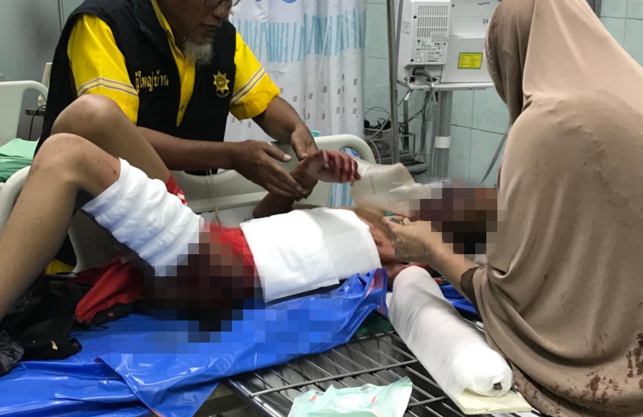 อย่างไรก็ตาม ล่าสุดอาการเด็กชายวัย 12 พบว่า มีอาการสาหัสจนอวัยวะภายในร่างกายบอบช้ำ โดยเฉพาะปอดได้รับความกระทบกระเทือนอย่างหนัก และยังมีแขนซ้ายหัก ขาขวาเป็นแผลฉกรรจ์ ตามร่างกายมีรอยไหม้ ต้องนอนรักษาตัวอยู่ที่ห้อง ไอ.ซี.ยู. โรงพยาบาลนราธิวาสราชนครินทร์ ส่วนเด็กชายวัย 13 อาการไม่สาหัสมาก แต่ยังต้องนอนรักษาตัวอยู่ที่โรงพยาบาล.