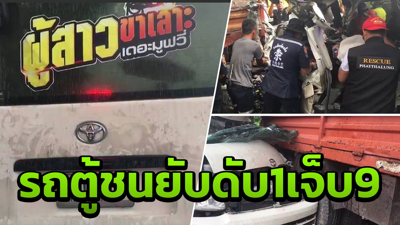 รถตู้คณะนักดนตรีของศิลปินลำไย ไหทองคำ จะมาแสดงงานกาชาดประจำปีของดีเมืองลุง เกิดอุบัติเหตุชนท้ายรถ 6 ล้อซ่อมบำรุงการไฟฟ้าตะโหมด บาดเจ็บ 9 คน และ หน.วงดนตรี ดับ 1...