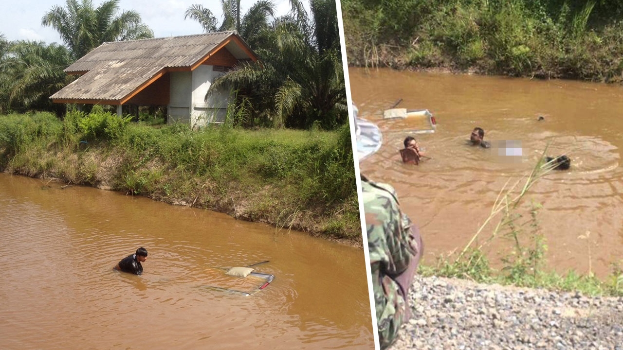 หนุ่มใหญ่ควบกระบะตกคลอง ที่ อ.ร่อนพิบูลย์ รถจมมิดทั้งคัน พลเมืองดีช่วยออกมาได้ แต่พ่อ ซึ่งเป็นเจ้าของสวนปาล์มเมืองคอน วัย 95 สำลักน้ำดับ ...