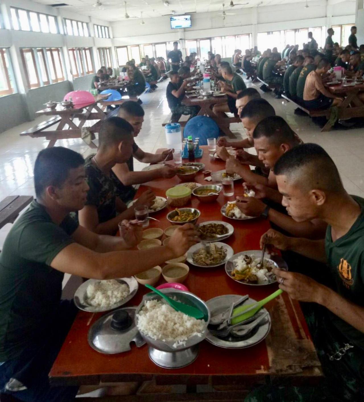 2. ในมื้อกลางวัน ผู้บังคับกองพัน ผู้บังคับกองร้อย จะร่วมรับประทานอาหารกับพลทหาร ที่โรงเลี้ยง ด้วย