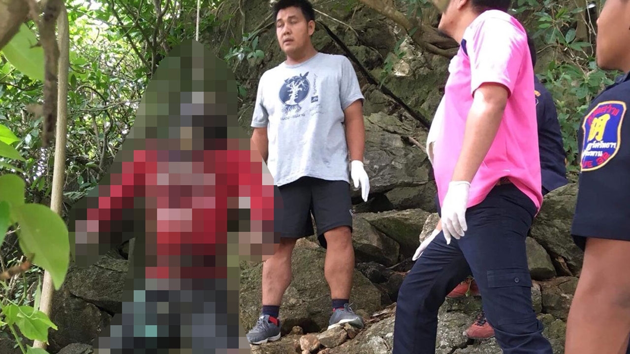 ที่เกิดเหตุพบศพชายนิรนาม ไม่ทราบชื่อ อายุประมาณ 30 ปี สูงประมาณ 160 ซม. รูปร่างสันทัด สวมเสื้อยืดแขนยาวสีแดง กางเกงขาสั้นสีดำลายต้นมะพร้าว ที่นิ้วนางข้างซ้ายสวมแหวน ผูกคอกับกิ่งไม่บริเวณกิ่งไม้ที่โขดหินบนเกาะ สภาพศพเริ่มเน่าอืด คาดว่าเสียชีวิตมาแล้วไม่น้อยกว่า 7 วัน โดยไม่สามารถระบุหน้าตาได้ โดยที่ช่วงเอวมีเชือกไนล่อนสีเขียวลักษณะคล้ายเชือกอวนคาดเอวอยู่