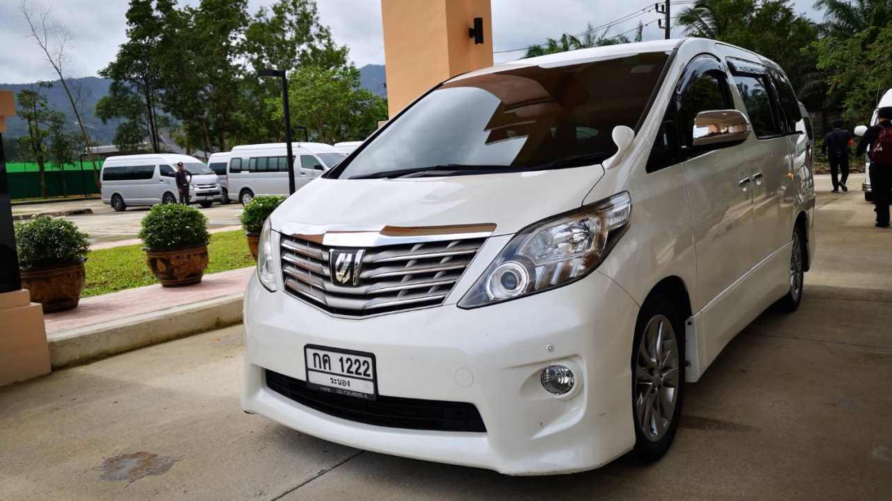 นายกรัฐมนตรีถึงระนองแล้ว เริ่มภารกิจทันทีที่หอประชุมพระยาดำรงสุจริตมหิศรภักดี ศูนย์ราชการจังหวัด นั่งรถตู้สีขาว รุ่นเดิม แต่หมายเลขทะเบียนไม่เหมือนเดิม