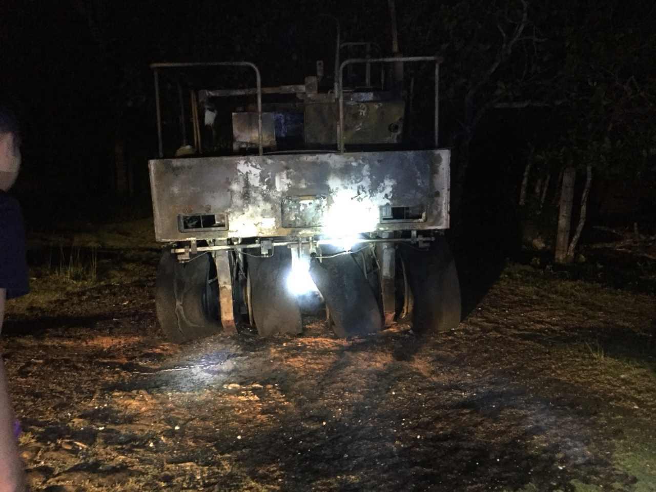 กรณีที่ จ.ตรัง มีคนร้ายก่อเหตุเหิมเกริมเย้ยกฎหมาย ราดน้ำมันเผาวางเพลิงรถเกรดทำถนน รถบด บริษัท ภัคสุธีโกศลก่อสร้าง จำกัด ตั้งอยู่เลขที่ 120/6 ม.6 ต.มะขามเตี้ย อ.เมือง จ.สุราษฎร์ธานี ได้รับความเสียหาย ขณะจอดไว้หน้าบ้าน นางหนูเนียน ดำจุติ นายก อบต.นาบินหลา อ.เมืองตรัง พุ่งปมแย่งชิงงานประมูลองค์การบริหารส่วนจังหวัด (อบจ.ตรัง) โครงการปรับปรุงซ่อมแซมถนนสายโคกชะแง้-เกาะปุด ในพื้นที่ ม.5 บ้านควนล้อน ต.นาบินหลา อ.เมืองตรัง งบประมาณ 2.9 ล้านบาท