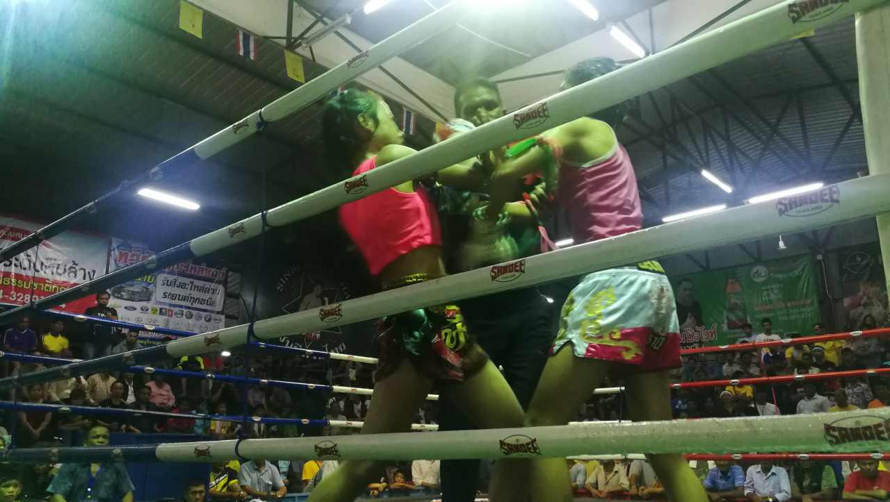 บรรยากาศการชก เซียนมวย ให้รุ่งขวัญฤทัย เป็นต่อ นีน่า ถึงพันสี่ แต่เมื่อขึ้นไปอยู่บนเวที นีน่า สู้ไม่ถอยใช้ไม้เด็ดลูกเตะแล้วค้ำเมื่อครบ 5 ยก กลับมาพลิกล็อกเป็นฝ่ายชนะด้วยคะแนน 49 ต่อ 47 คะแนนทั้ง 3 เสียง ได้ครองเข็มขัดแชมป์เป็นเส้นที่ 3 และทำสถิติชนะรวดไม่เคยแพ้ใครมา 13 ไฟต์ติดต่อกัน โดยตลอดการชก นางโสรยา คอยดูอยู่ห่างๆ ข้างเวที ส่วนพ่อขึ้นไปเป็นพี่เลี้ยง
