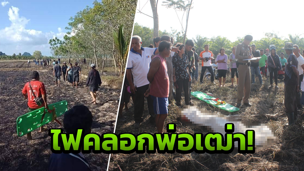 สลด!! พ่อเฒ่าวัย 81 ปี ชาวพัทลุง จุดไฟเผาตอซังข้าว ลมกระโชกแรง ไฟโหมลุกลามทุ่งนา-สวนยางพารา คลอกพ่อเฒ่าเสียชีวิตคากองเพลิง
