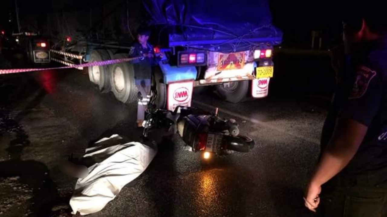 เมื่อเวลา 19.30 น.วันที่ 16 ก.ย. ร.ต.อ.ลือชัย รัตนคช รอง สว.(สอบสวน) สภ.ถ้ำพรรณรา จ.นครศรีธรรมราช รับแจ้งเกิดอุบัติเหตุรถจักรยานยนต์ชนท้ายรถพ่วง 22 ล้อ มีผู้เสียชีวิต เหตุเกิดบนถนนสายเอเซียฝั่งขาล่อง หน้าป้อมสายตรวจตลาดถ้ำทอง หมู่ 3 ต.ถ้ำพรรณรา จึงไปสอบสวนพร้อมด้วยมูลนิธิสยามรวมใจปู่อินทร์ถ้ำพรรณรา