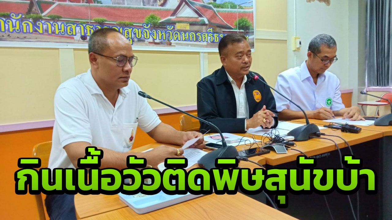 รองผู้ว่าฯ เมืองคอน เผย ยังไม่พบผู้ป่วยบริโภคเนื้อโคติดเชื้อพิษสุนัขบ้า ยัน ไม่มีการหามส่ง รพ. แค่พาผู้ต้องสงสัย 116 ราย ไปฉีดวัคซีนป้องกันโรคเท่านั้น แจ้งความเอาโทษหนักคนชำแหละ จำคุก 3 ปี ปรับ 2 แสน
