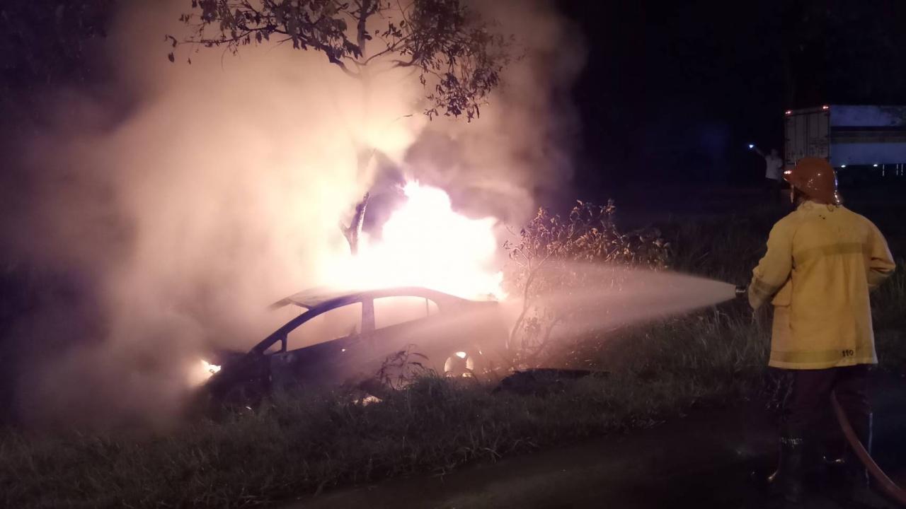 ที่เกิดเหตุ ถนนสายเอเชีย (41) ทุ่งสง-สุราษฎร์ธานี ฝั่งขาขึ้น (หน้าไปรษณีย์) หมู่ 4 ต.นาโพธิ์ อ.ทุ่งสง จ.นครศรีธรรมราช พบเจ้าหน้าที่มูลนิธิ เจ้าหน้าที่ดับเพลิง กำลังช่วยกันระดมฉีดน้ำดับเพลิงที่กำลังลุกไหม้รถเก๋ง ยี่ห้อฮอนด้าซีวิค รุ่นนางฟ้า สีส้ม หมายเลขทะเบียน กค 6160 นครศรีธรรมราช ใช้เวลาประมาณ 30 นาที เพลิงจึงสงบ
