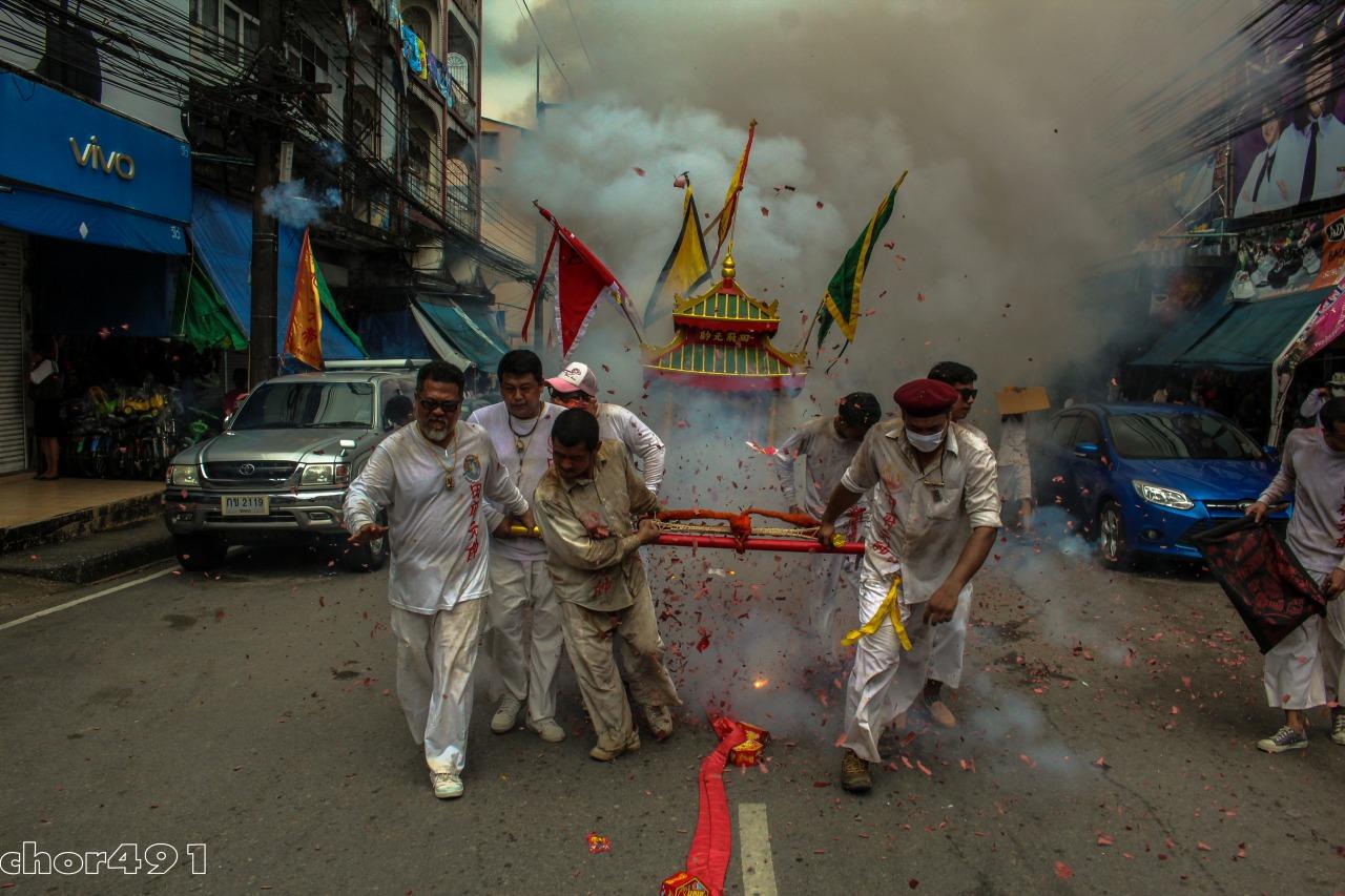 เมื่อวันที่ 16 ต.ค.2561 ผู้สื่อข่าวรายงานว่า ขบวนม้าทรงเล่นประทัดล้านนัดจาก 22 อ๊าม ทั่วทั้งจังหวัดระนอง ร่วมกันแสดงอิทธิฤทธิ์เดินไปตามถนนสายท่าเมือง-เรืองราษฎร์ โดยเริ่มจากตลาดภูมิชนกถนนสะพานปลา ไปสิ้นสุดที่บริเวณที่ถนนเรืองราษฎร์แยกธนาคารกรุงไทย รวมระยะทางกว่า 3 กิโลเมตร ร่วมขบวนแห่พระหรือพิธีอิ้วเก้งไปตามถนนสายสำคัญในเขตเทศบาลเมืองระนอง เพื่อให้พี่น้องประชาชนชาวจังหวัดระนองและบรรดาห้างร้านต่างๆ ที่อยู่ในตัวเมืองระนอง ได้ตั้งโต๊ะบูชาเพื่อความเป็นสิริมงคลแก่ตนเองและครอบครัว โดยตลอดเส้นทางจะมีการจุดประทัด ขบวนมังกรทอง สิงโตกวางเจา แป๊ะยิ้ม สร้างความตื่นตาตื่นใจให้แก่นักท่องเที่ยวทั้งชาวไทย ชาวต่างประเทศ และประชาชนชาวระนองเป็นจำนวนมาก