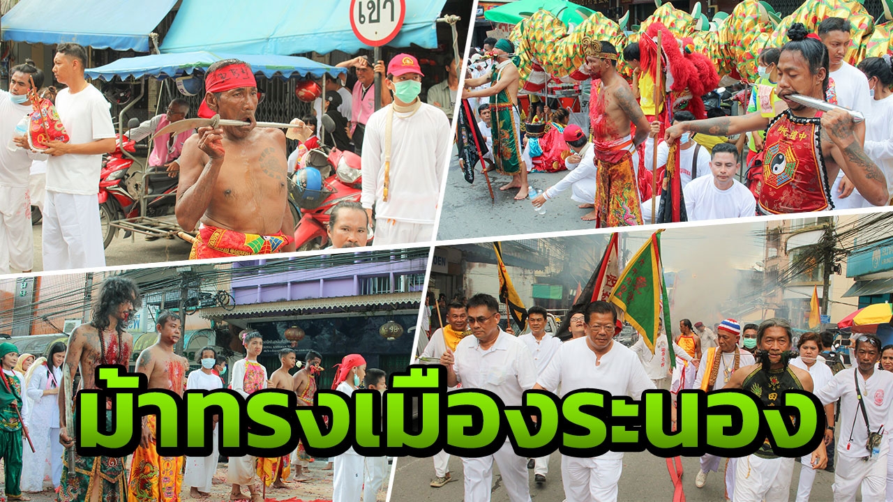 ขบวนม้าทรงเล่นประทัดล้านนัดจาก 22 อ๊าม ทั่วทั้งจังหวัดระนองร่วมขบวนแห่อิ้วเก้ง แสดงอิทธิฤทธิ์เดินไปตามถนนสายท่าเมือง-เรืองราษฎร์สร้างความตื่นตาตื่นใจให้แก่นักท่องเที่ยว และชาวบ้าน...
