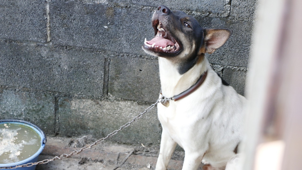 หลังรับแจ้งผู้สื่อข่าวจึงเดินทางลงพื้นที่ไปตรวจสอบ ที่บ้านเช่าเลขที่ 42/1 หมู่ 8 ต.โคกหล่อ อ.เมือง จ.ตรัง ตั้งอยู่ริมถนนสายวัดโคกหล่อ-ควนขัน บริเวณหลังบ้านดังกล่าว มีการกั้นด้วยกำแพงปูน และมีประตูเหล็กอยู่ในสภาพไม่ได้ล็อกกุญแจ สามารถเปิดเข้าออกได้ และไม่มีหลังคาปิดกั้นไว้บริเวณด้านบน ภายในพบสุนัขพันทางลูกผสม ชื่อ “โตโน่” เพศผู้ อายุประมาณ 2 ปี บริเวณคอถูกล่ามด้วยโซ่เหล็กความยาวประมาณ 1.5 เมตร ผูกติดอยู่กับแผ่นเหล็กที่ติดอยู่กับผนังกำแพง กำลังเห่า และส่งเสียงร้องโหยหวนตลอดเวลา มีนิสัยดุร้าย โดยที่ไม่มีใครสามารถเข้าใกล้ได้ ใกล้กันพบกะละมังที่มีน้ำสภาพน้ำเน่าเหม็นอยู่ภายใน