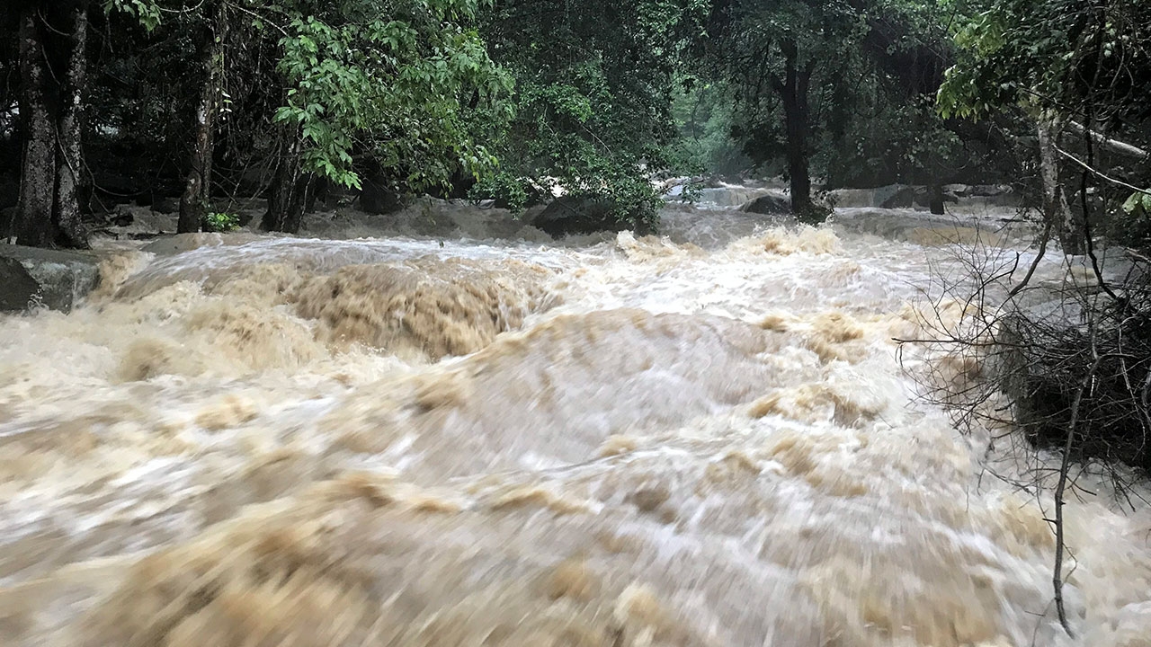 กระแสน้ำป่าจากภูเขาไหลเชี่ยวกรากลงมายังน้ำตกหินลาด อ.เกาะสมุย จ.สุราษฎร์ธานี หลังจากเกิดฝนตกหนัก เจ้าหน้าที่แจ้งเตือนห้ามไม่ให้นักท่องเที่ยวลงเล่นน้ำตก หรือเข้าใกล้บริเวณลำธาร ปริมาณน้ำไหลท่วมถนนรอบเกาะบางจุดเพราะระบายลงสู่ทะเลไม่ทัน.