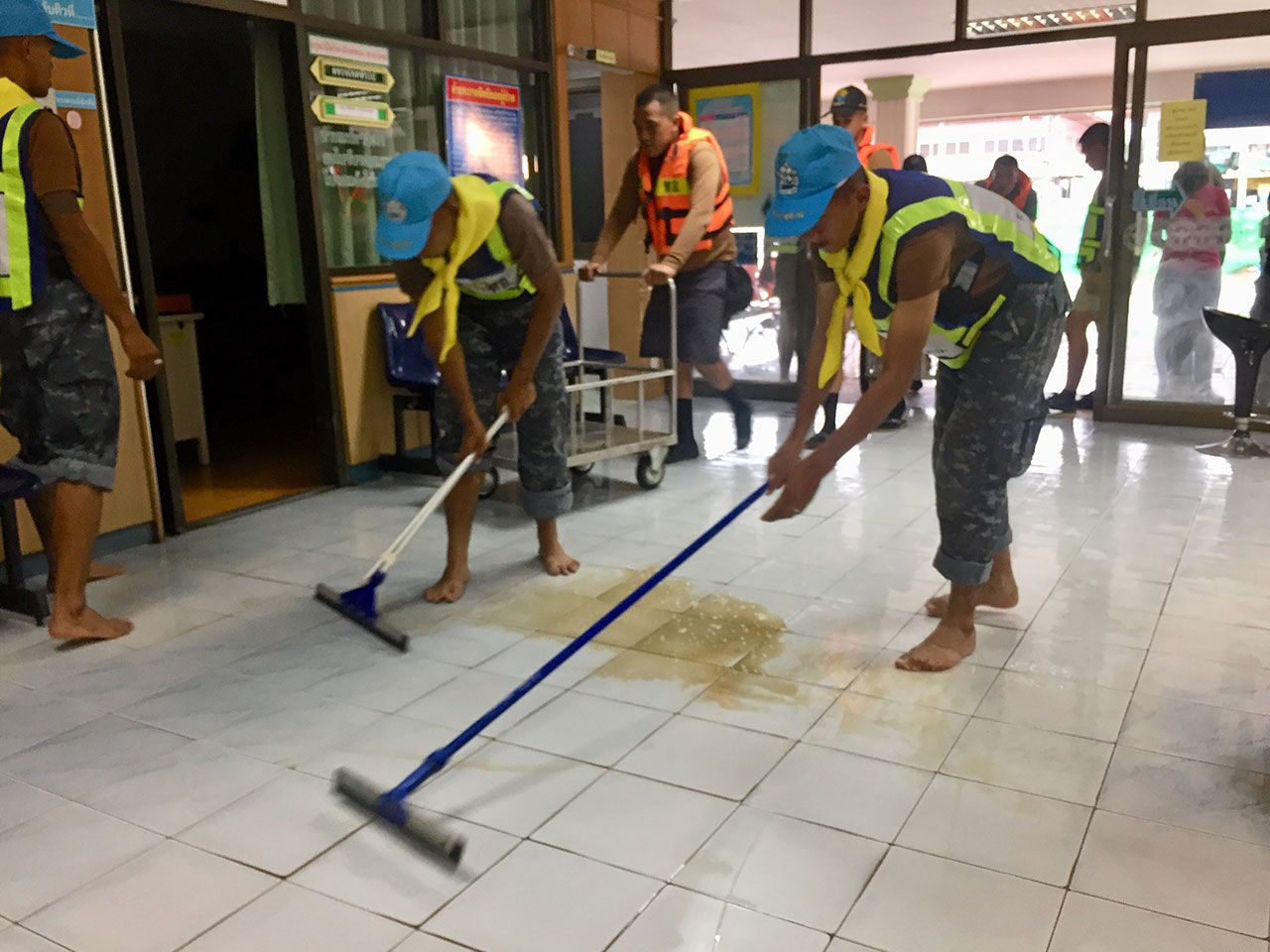 ขณะที่ นพ.เชิดชาย ชยวัฑโฒ ผอ.รพ.บางสะพาน จ.ประจวบคีรีขันธ์ กล่าวว่า หลังเกิดน้ำท่วมเข้าภายในโรงพยาบาลบางสะพาน เจ้าหน้าที่ปิดรับผู้ป่วยนอกและผู้ป่วยฉุกเฉิน ย้ายไปตั้งหน่วยแพทย์สนามที่โรงเรียนบางสะพานวิทยา ผู้ป่วยฉุกเฉินสามารถเข้าไปรับการรักษาได้ตามปกติ มีแพทย์และพยาบาลประจำตลอด 24 ชั่วโมง สถานการณ์น้ำท่วมเมื่อคืนวันที่ 9 พ.ย. ที่ห้องฉุกเฉิน และอาคารผู้ป่วยนอกระดับน้ำท่วมสูงประมาณหัวเข่า ภายหลังน้ำลดคงต้องใช้เวลาฟื้นฟู 2 วัน จะกลับมาให้บริการตามปกติ