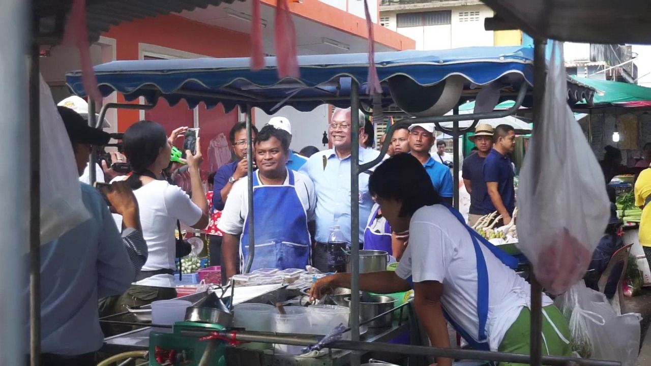 ผู้สื่อข่าวรายงานว่า เมื่อนายสุเทพเดินมาถึงตลาดสดเทศบาลเมืองหลังสวน ได้ทักทายกับชาวบ้านและแม่ค้าและได้ช่วยแม่ทำข้าวเกรียบปากหม้อ โดยแม่ค้าคนดังกล่าวบอกว่า ที่ผ่านมาได้เดินทางไปร่วมชุมนุมกับนายสุเทพ ที่กรุงเทพมหานครมาแล้ว ท่ามกลางบรรยากาศการต้อนรับที่ชื่นมื่น และเป็นกันเอง สร้างสีสันและรอยยิ้มให้กับนายสุเทพและทีมงานเป็นอย่างมาก