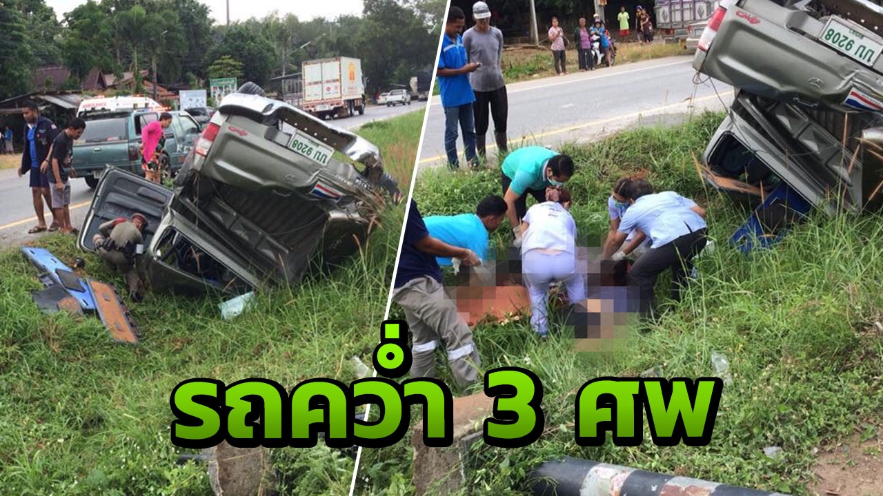 กระบะเสียหลัก พุ่งชนเสาไฟฟ้าริมถนนสายเอเชีย ที่พัทลุง ก่อนตกลงไปร่องกลางถนน เจ็บสาหัส 3 ราย ก่อนทั้งหมดไปเสียชีวิตที่ รพ. คาดหลับใน ...
