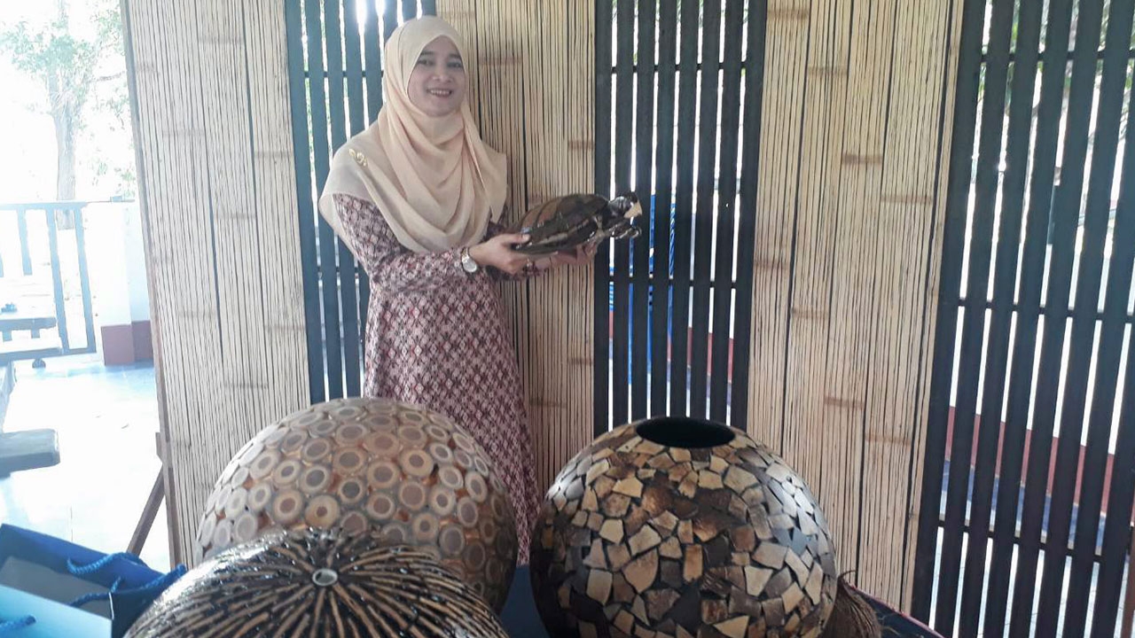 นางสิลตา เกษม ฝ่ายออกแบบผลิตภัณฑ์ของหมู่บ้านแห่งนี้ กล่าวว่า ก่อนจะดำเนินงานเรื่องนี้ ได้ผุดแนวคิดหากนำกะลามะพร้าวถูกทิ้งไว้จนดูไร้ค่า มาแปรรูปเป็นผลิตภัณฑ์ น่าสร้างงานและรายได้อย่างแน่นอน